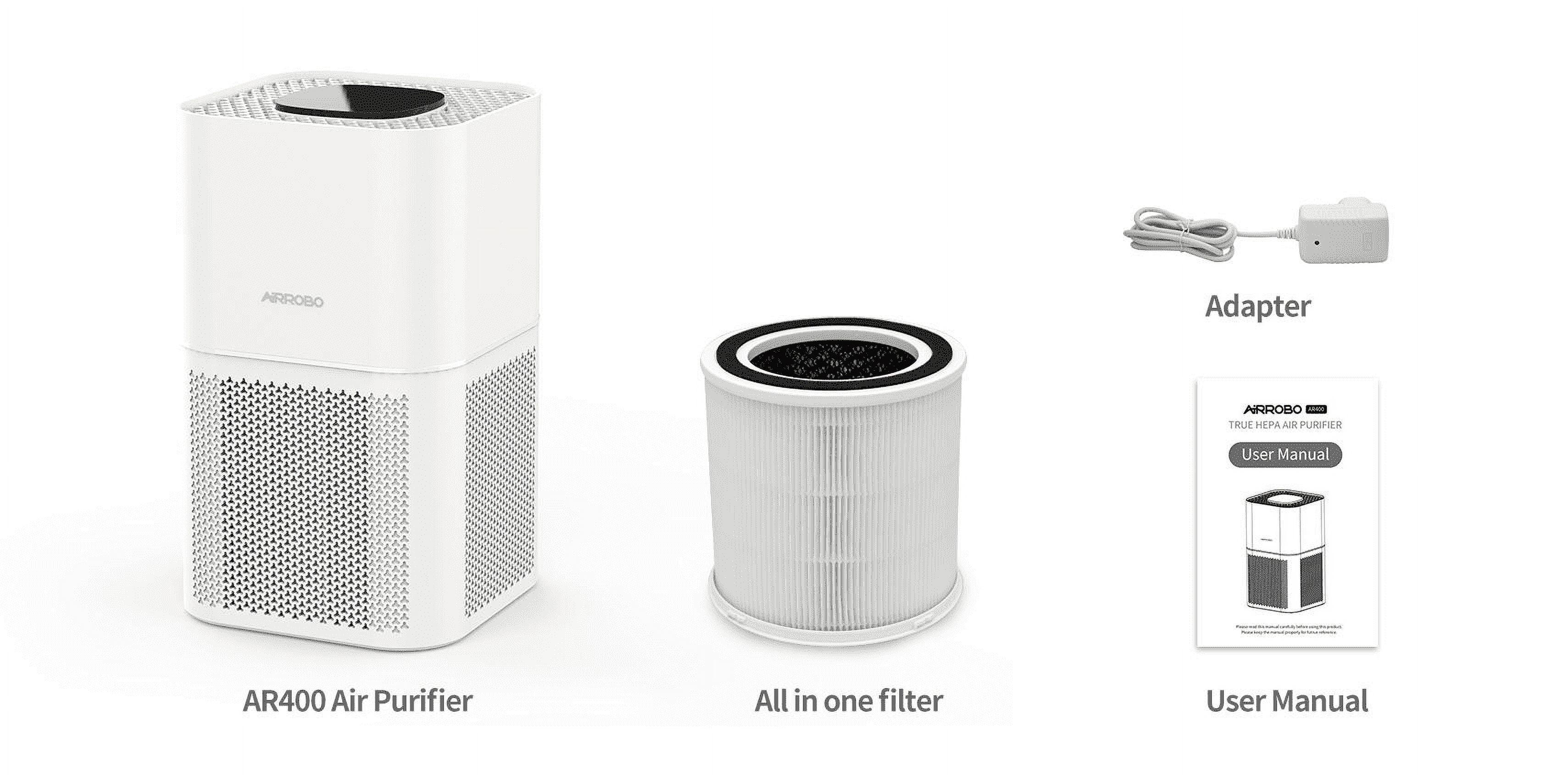 Features: 1. Rapid and High Efficiency Purification: AIRROBO AR400 air purifier features CADR 300m³/h (188CFM), can refresh 300 ft2 area in only 13 mins and large space up to 616 ft² in only 27 mins, More efficient and faster, It’s perfect for living rooms, bedrooms, offices and kitchens. 2. Advanced Tres Air Filtration technology: Adopting advanced Tres AirTM Filtration Technology, AIRROBO AR400 H13 True Hepa Air Purifier can effectively trap dust, smoke, pollen, odor, and ease sneezing, congestion, and other allergy symptoms caused by airborne contaminants. 3. Super Quiet: Thanks to the new brushless motor, the noise level is reduced to 20.2dB at sleep mode, you can enjoy clean air all night without disturbing your sleep. 4. Smart Filter Replacement Reminder: The indicator of filter replacement reminder reminds you when it’s time to replace the filter to ensure great performance. It is recommended to replace your filter every 6-8 months depending on the use frequency and air quality. 5. Adjustable Speeds & Set a Timer for Purification: 4 fan speeds are designed to meet different air quality and personal needs. AR400 offers 8 timer options (1H/2H/3H/4H/5H/6H/7H/8H) for you, allowing you set the air purifier to run for a specific time and helping you save more energy. Specifications: Model Number: AIRROBO AR400 Air Purifier Dimension: 221 x 221 x 372 mm Air Purifier Weight: 3.2kg Effective Purifying Area: 616 ft2 (57 ㎡) CADR: 300 m3/h HEPA Type: H13 True HEPA Filter 3-Stage Filtration System: Pre-filter/True HEPA filter/Enhanced activated carbon filter 3 Replacement Filters: Original H13 True HEPA Filter (default installed) Pet Allergy Replacement Filter (need to buy separately) Toxin Absorber Replacement Filter (need to buy separately) Noise Level: 20.2dB(Sleep Mode), 31.5dB(Speed 1), 37.7dB(Speed 2), 43dB(Speed 3) Power: 1.6W(Sleep Mode), 6W(Speed 1), 17W(Speed 2), 35W(Speed 3) Packing List: 1 x AR400 Air Purifier 1 x True HEPA Filter (Installed in the Air Purifier) 1 x Adapter 1 x User Manual 1 x Warranty Card