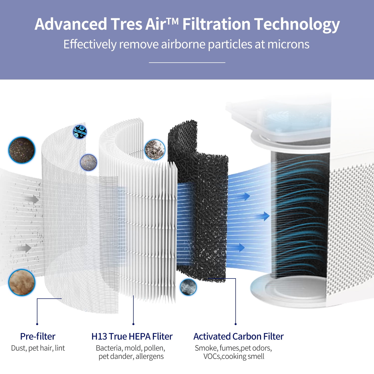 True Heap Filter of 3-Stage Filtration System: effectively capture particulates as small as 0.3 micros such as allergens, pet odor, hair, dander, smoke, cooking fumes and large dust particles. High Efficiency Air Purifier: With a CADR rate of 300 m³/h (188 CFM) suited for all rooms like living rooms, bedrooms, kitchens, offices and dorms. 4 Fan Speeds With Sleep Mode: Options of low, medium, or high fan speeds according to the air quality. And only 20.2 dB under sleep mode to enjoy your newborn sleep. 8 Timer Options: The Air Purifier provides a timer option that allows you to set an auto-off from 1 hour to 8 hours, helping you save energy. Ozone Free: AIRROBO AR400 purifies the air without UV-C light or electronic filtration which produces ozone and secondary pollution with harmful effects.