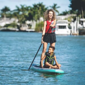 – Package includes: Paddleboard, carry a backpack, inflatable paddle board pump, ankle leash, 3-piece adjustable paddle, repair kit, cellphone dry pouch