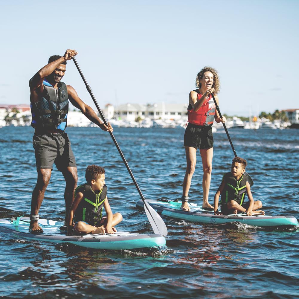 Whether you are at the beach, the lake, or anywhere else there s water, things just got a whole lot more fun. With a wide and stable design, this paddle board is perfect for paddlers of all skill levels. The board rolls up and stored in the included backpack and it can be pumped up and ready for the water in under 10 minutes. The paddle board package includes the board, paddle, hand pump, storage backpack, leash, repair kit, and dry pouch.