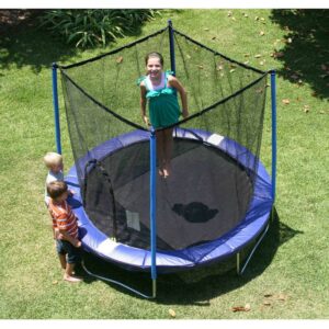 Add some safe fun to your backyard with the Airzone 8′ Trampoline with Safety Enclosure in Blue. It features enclosure netting that’s made of a durable, non-abrasive polyethylene mesh, which is tightly woven so little fingers and toes don’t get caught. The Airzone trampoline springs are made of high-performance stainless steel protected with a weather-resistant PVC frame cover and thick sewn-in padding. It also features W-shaped legs that create two contact points for each leg to provide additional stability. This Airzone 8′ Trampoline with Safety Enclosure in Blue includes a patented zippered arch that allows you to close the mesh easily and quickly. It also has an added bungee cord around the top of the enclosure that keeps netting taut and secured to the enclosure masts. This backyard trampoline can provide hours of entertainment in a safe environment.