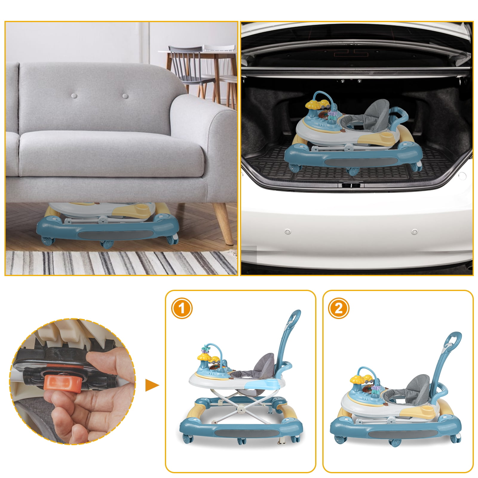 【High quality】Baby walker made of Eco-friendly original raw material plastic, High quality cushion, safer and Non-toxic easy to care for, Wearable cushion, portable and breathable & comfortable design for babies. 【Height Adjustment】5 walker heights, Suitable for Baby of Different Heights. Grows with your baby to make sure your child stay safe as They begin to crawl and Explore.Baby maximum Load 15 kg. 【Multi-function – Mode】This baby’s early education walker has four uses. The toddler function, walking assistance function, horse rocking function, and dining table function make the baby happy and the mother rest assured. 【Unique design】- The baby stroller is equipped with a fun music box, detachable sunshade, and adult pusher. The chassis is widened without touching the feet, making baby walking more stable. 【Wheels and Legs】Square design. The baby walker with 8 wheels work on floors easy moving. 4 sturdy crossed stainless steel legs allow babies to play safely and securely. Material: Plastic Design: Folding Baby Walker with Music Toys Type: ANJORALA Unisex Baby Walker Color: Black, Green, Pink Style: Cartoon