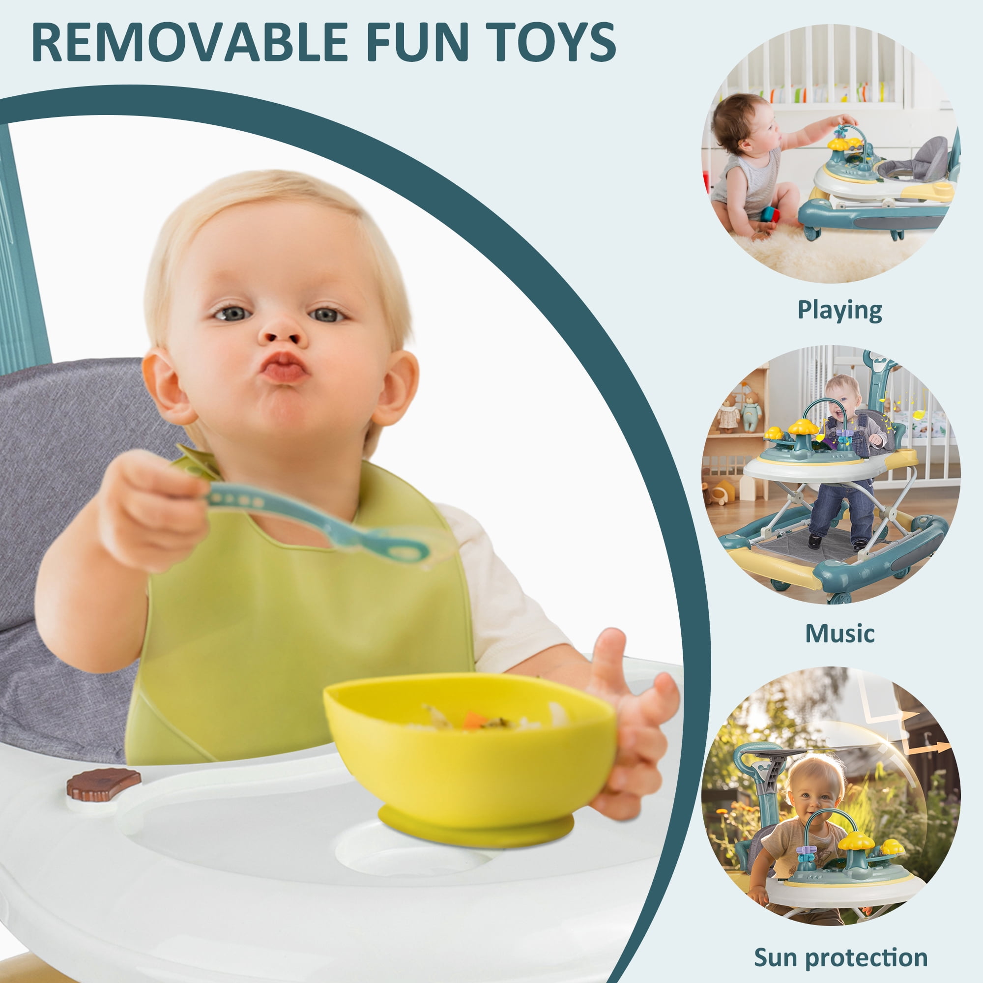 AJONALAA Infant Baby Walker with Wheels, Adjustable Activity Center for Boys Girls,Green