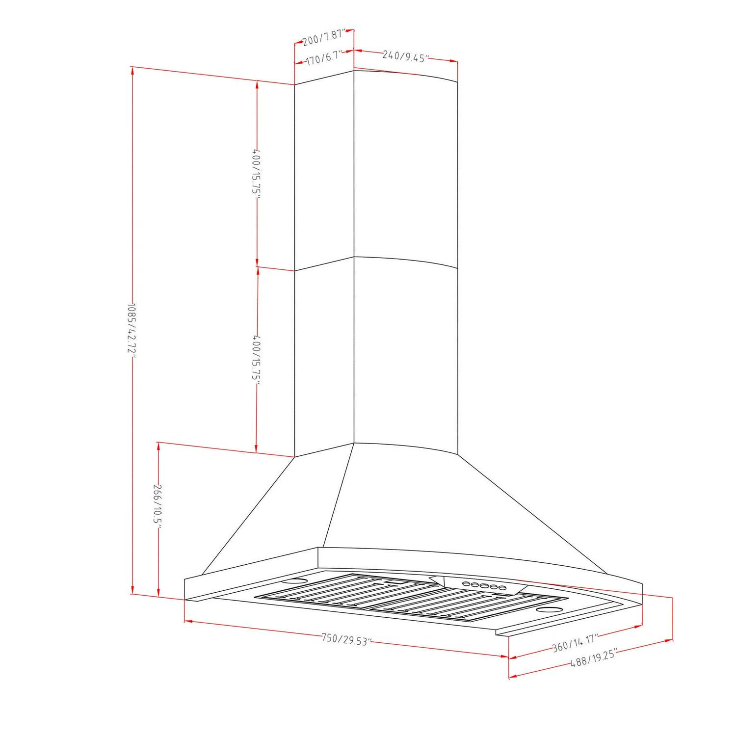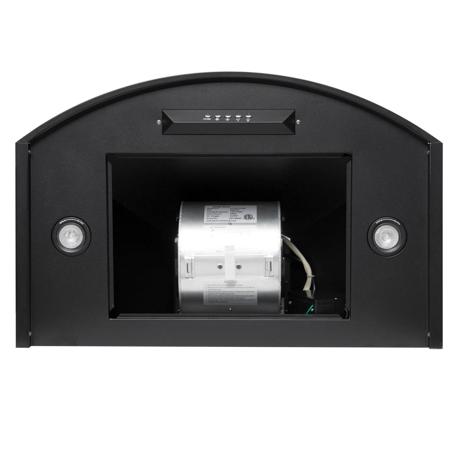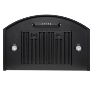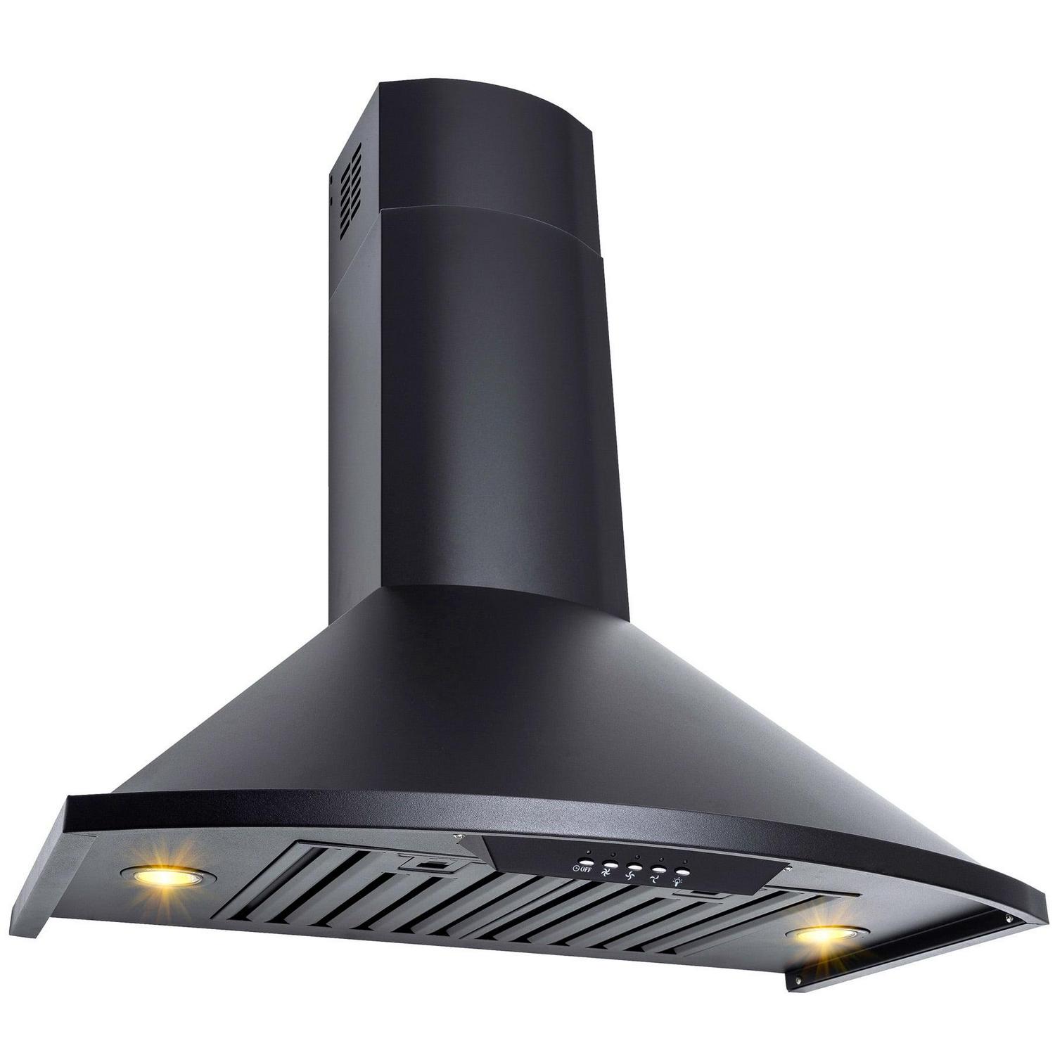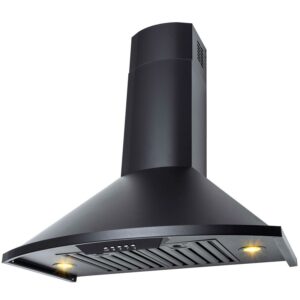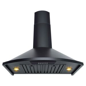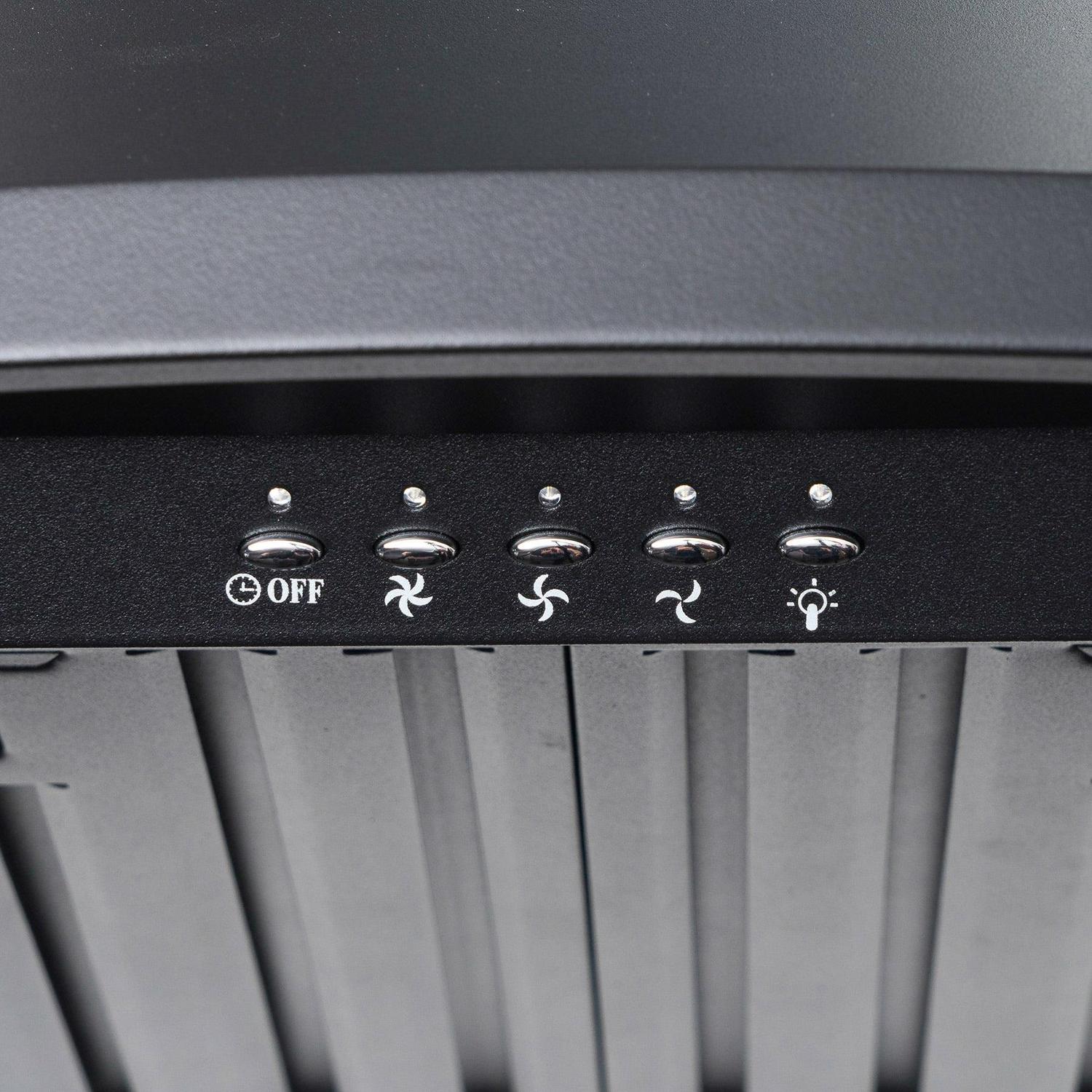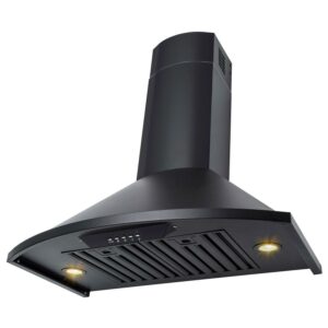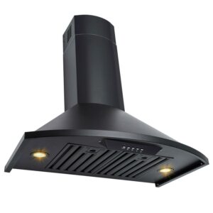 Futuristic, modern, and a beautiful solid black painted. This AKDY 30 wall mount range hood brings a unique style that gives a contemporary feel to your kitchen. The control panel on the front brings a 3-speed, 400 CFM with a noise reduction of