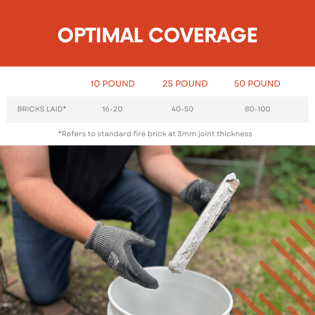 READY TO USE: Preblended, add water and go! INDOOR OR OUTDOOR: Ideal for fireplaces, inside of fire pit rings, barbeques, pizza ovens, and chimney applications such as setting clay flue liners, parging a smoke chimney chamber BUILT FOR HIGH TEMPERATURES: Made to resist 2,550°F (1400°C) for a minimum of 6 hours without melting out of the joints of a firebrick and refractory mortar assembly EFFICIENT WORKING TIME: Provides 1 hour of working time before hardening HIGH STRENGTH: Once cured, becomes water-insoluble and acid-resistant Multipack Quantity: 1 Model Number: 114266