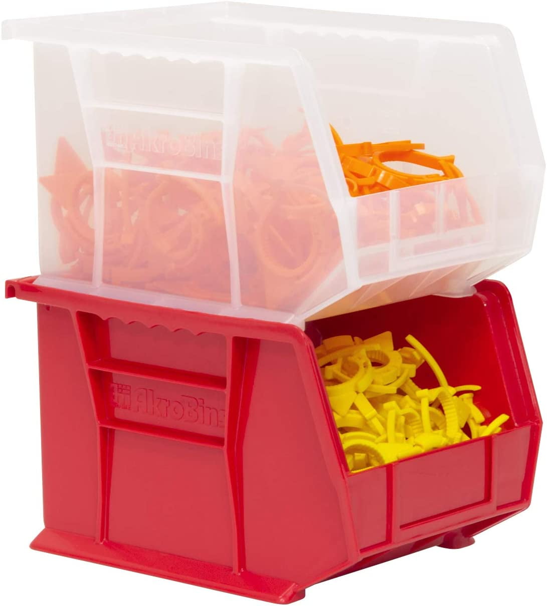 Akro-Mils Stackable Storage Bins, AkroBins 30239 Stacking Organizer, 11″x8″x7″, Red, 6-Pack