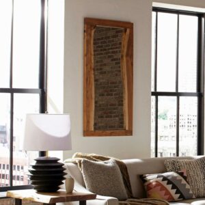 Alpine Live Edge Mirror is uniquely yours; style your entryway, living room or bedroom with this gorgeous natural Acacia wood mirror. Every mirror will be unique due to the natural qualities of the wood. The live edge is on the inside of the mirror frame while the outside of the mirror frame is square. Constructed of natural acacia wood. No piece is exactly alike, the subtle imperfections such as knots and cracks are part of the wood’s character. A clear natural finish enhances the beautiful features in each piece of wood. Every mirror will be unique due to the natural qualities of the wood Product dimensions reflect the outer edge of the mirror; inside dimensions will vary. Live edge is on the inside of the mirror frame; outside of the mirror frame is square. No piece is exactly alike; subtle imperfections such as knots and cracks are part of the wood’s character. Clear natural finish