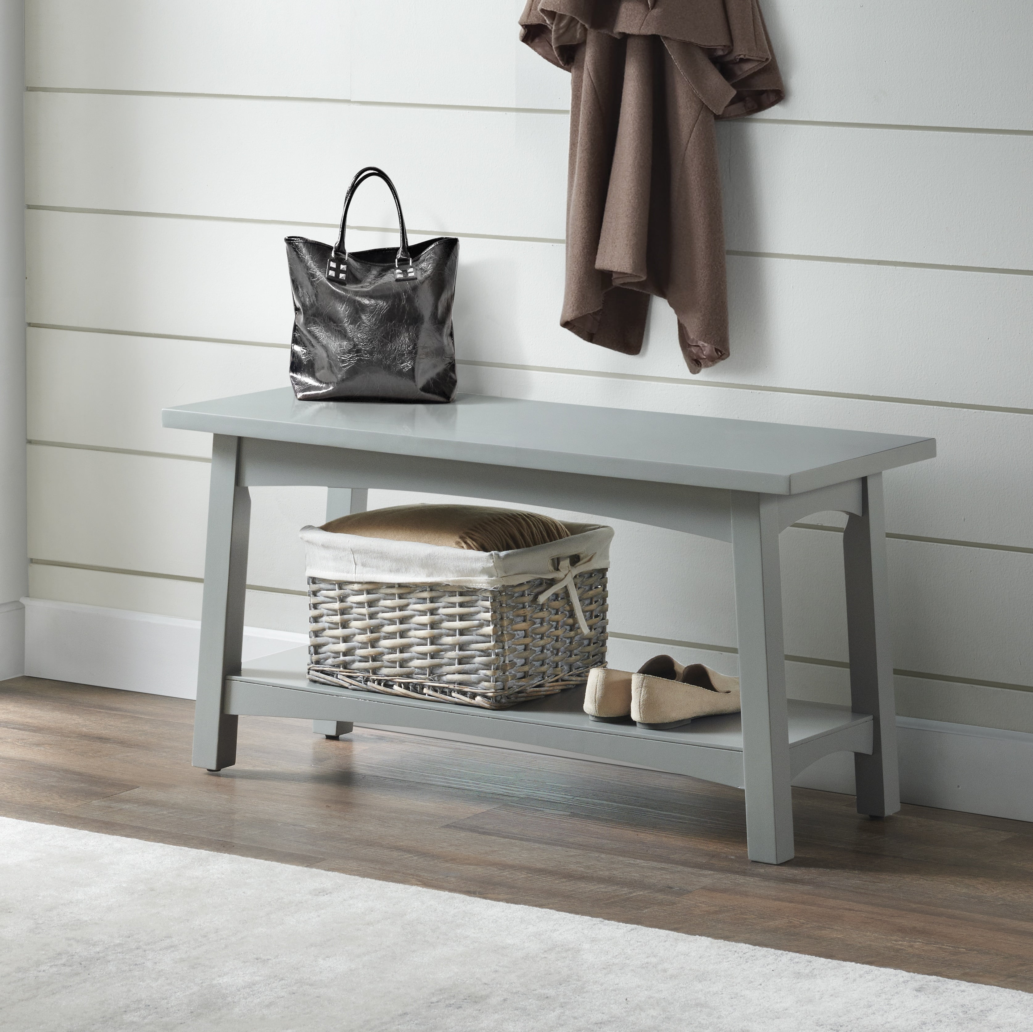 [SCULPTURAL AND FUNCTIONAL DESIGN] Craftsbury Entryway Bench combines elegant design with functionality. Classic lines and decorative sides make it a versatile piece for any aesthetic [SEATING FOR TWO] Spacious enough to accommodate two people, the bench is a perfect addition to entryway, dining room, or living area. It provides a comfortable seating space that complements practically any decor [ROBUST CONSTRUCTION] This 36″ wide bench, made from durable wood, features a shelf for storage measuring 29 3/4″W x 8 1/2″D x 10 1/4″H. Perfect for entryways or dining spaces, it offers ample storage for shoes, bags, or other items [EFFORTLESS ASSEMBLY AND MAINTENANCE] Quick assembly for the Craftsbury Entryway Bench; easy to clean and maintain for a clutter-free space [COLORS AVAILABLE] The Craftsbury collection comes in dove gray and white finishes, making it a chic addition to lofts, cottages, and apartments with its cozy pastel tones and designer appeal
