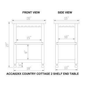 Bolton Furniture Country Cottage 2 Shelf End Table, Red Antique Finish