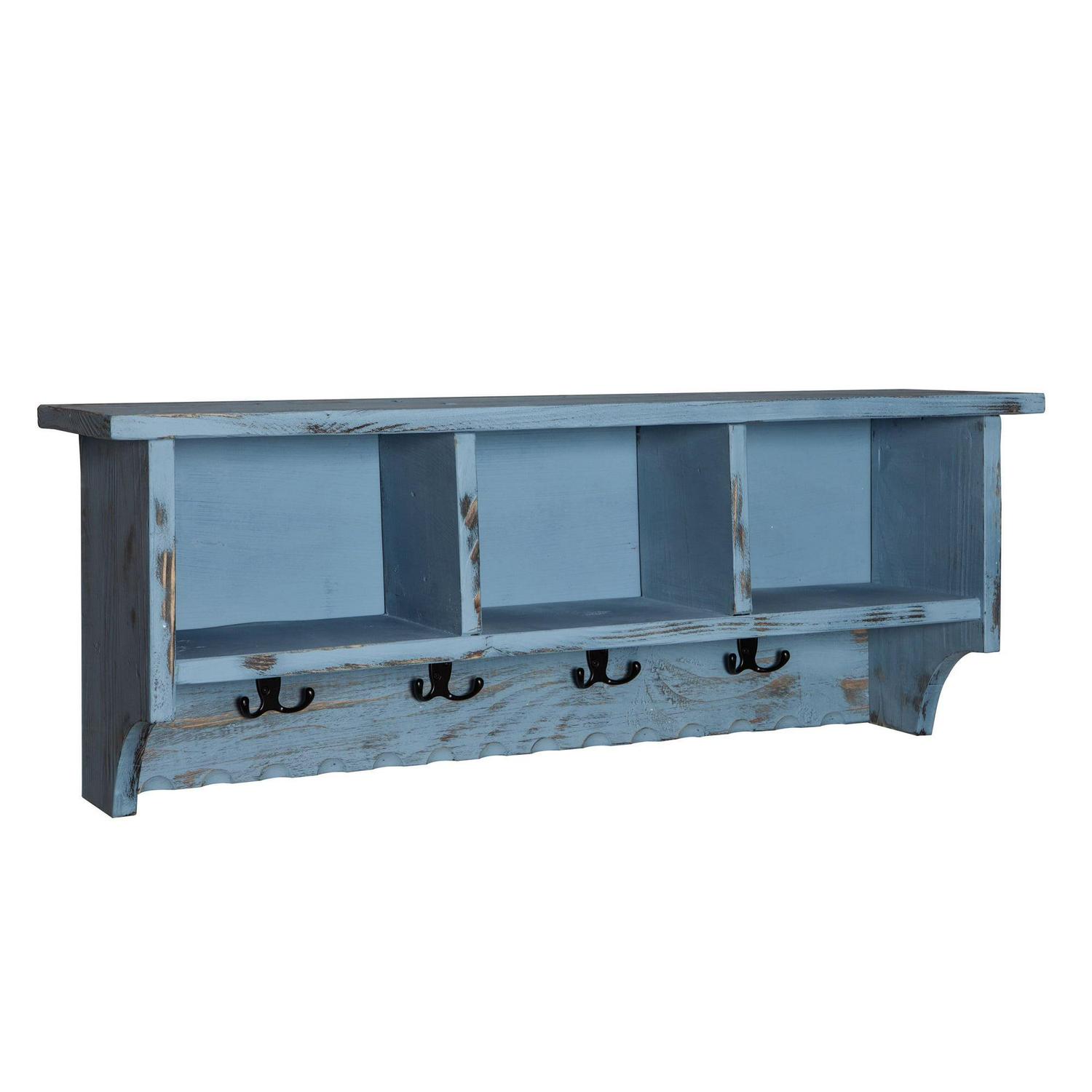 Bolton Furniture Country Cottage Coat Hook with Storage Cubbies, Blue Antique Finish