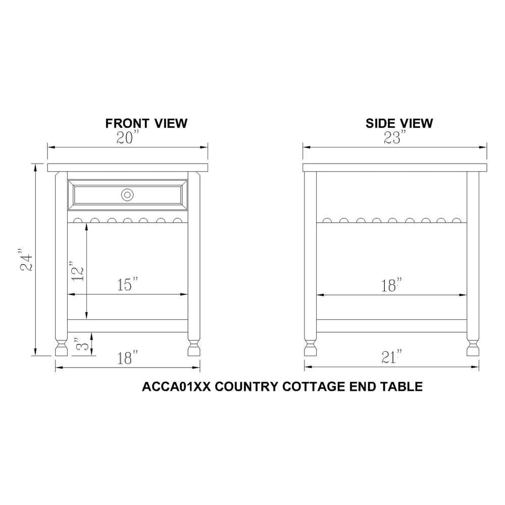 Rustic Cottage Collection will be a charming addition to your home’s dÃcor. With its detailed dental work, square legs and select hardwoods (Pine/Acacia) with composite wood construction each piece will be a unique accent in your living space. End table with drawer and shelf allows you to store remotes and other items you need close at hand.