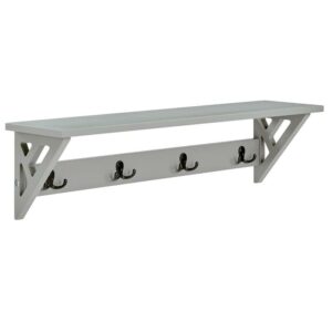 - 4 double coat hooks with a 36″ L shelf