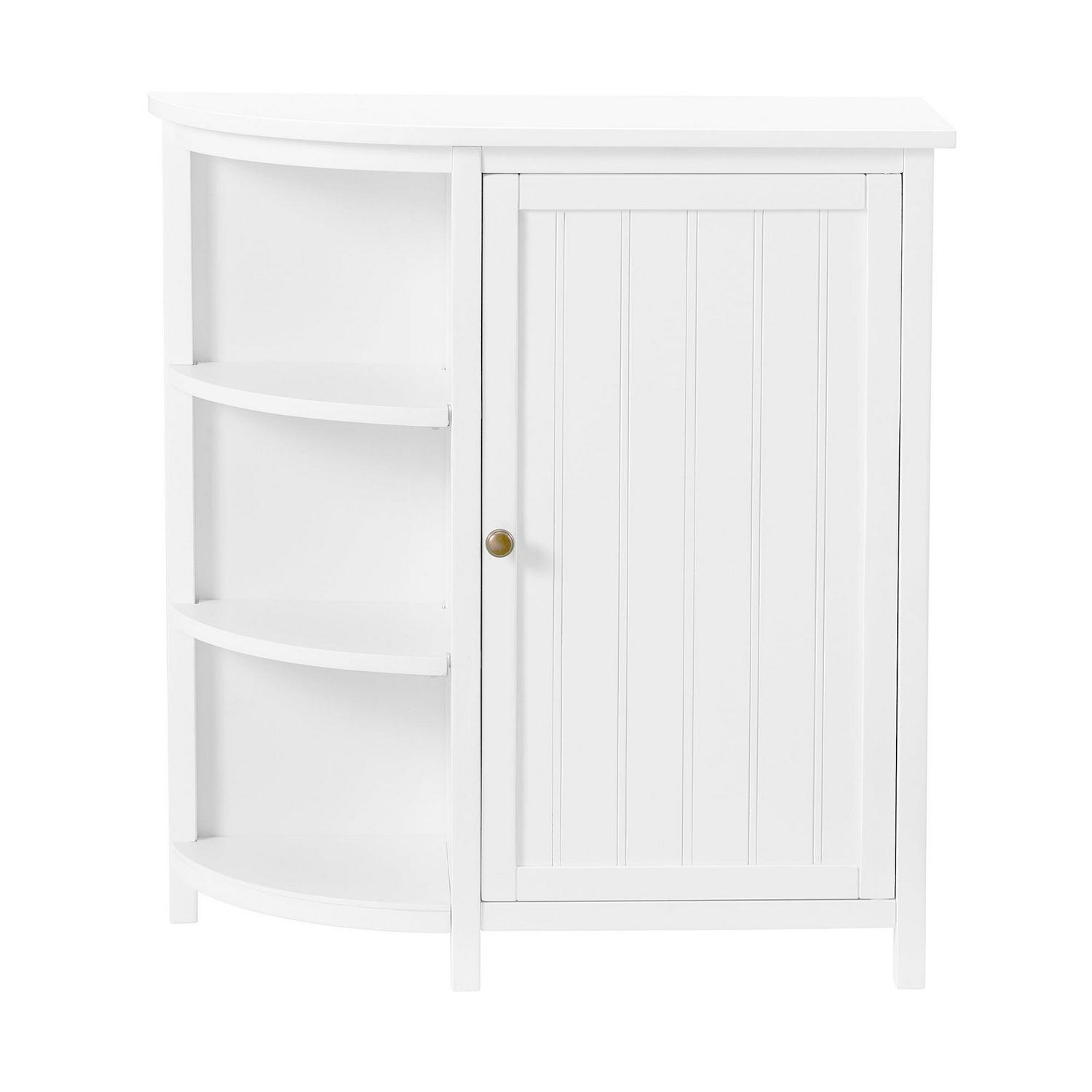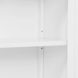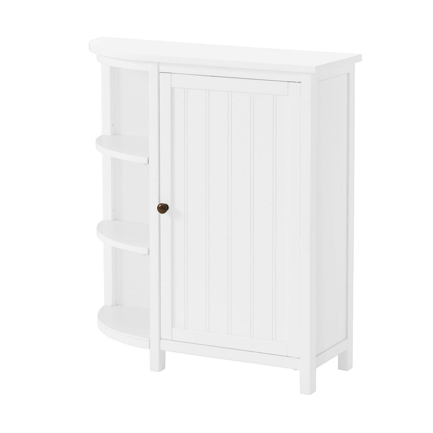 This collection brings space-saving storage to your bathroom. The classic design compliments almost any bathroom decor. Wood construction with a white, painted finish, these pieces are designed for both style and functionality. Store toiletries, stacked washcloths, rolled towels or anything you need to keep organized. This 27″ wide stand-alone storage cabinet with shelving features two adjustable shelves inside the cabinet and two adjustable shelves on the side of the cabinet. This bath cabinet is perfect for your powder room, guest bath or master suite. Bath collection is moisture resistant.
