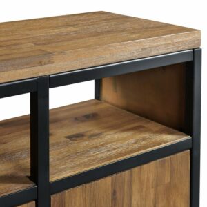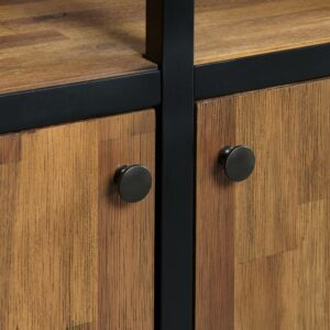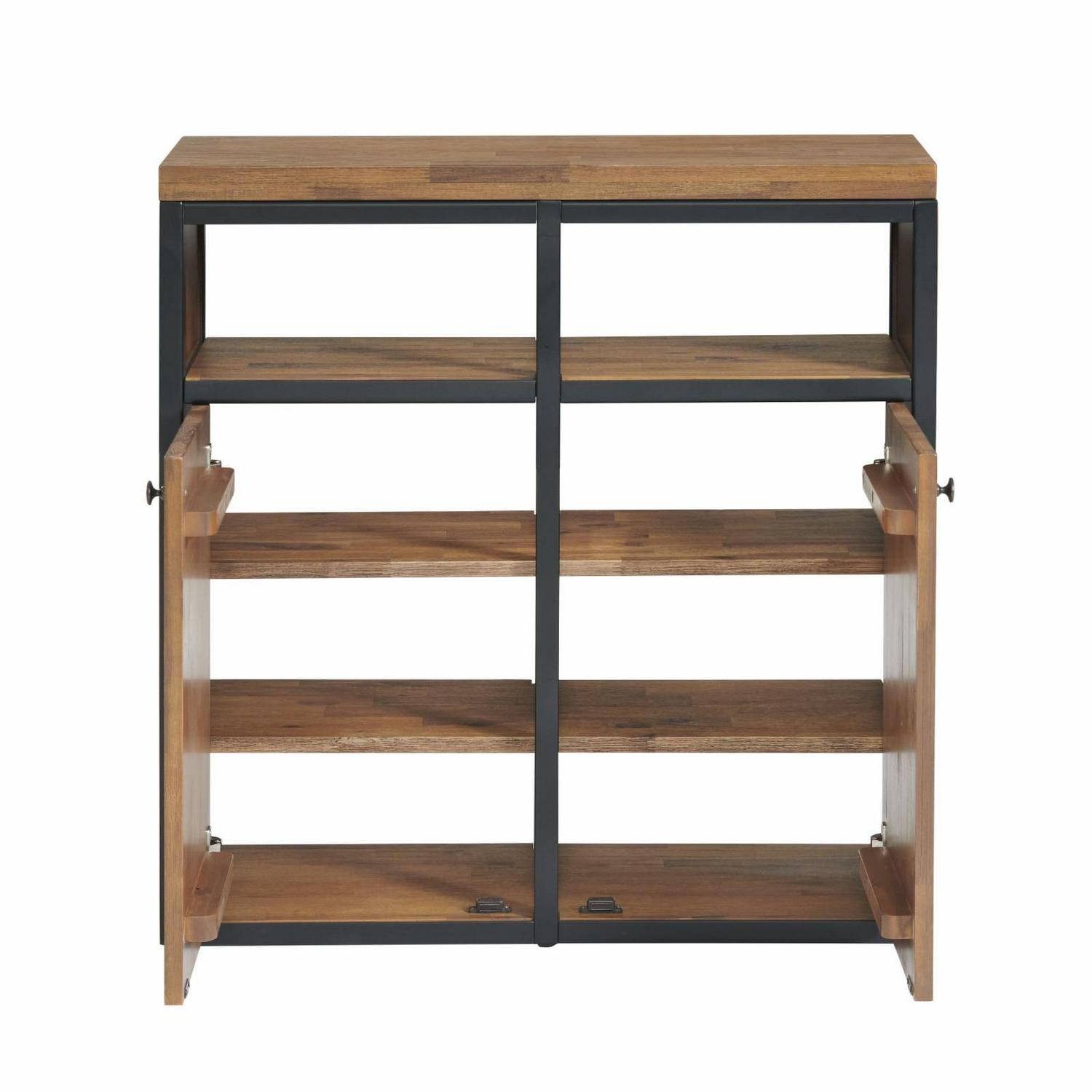 Keep your entryway or hallway organized with this shoe storage cabinet. The shoe storage cabinet is both beautiful and functional, providing ample storage and style for your home’s entryway or hallway. Made from acacia wood and metal ,the mix of materials gives this cabinet an industrial, modern look. Behind the two doors are two adjustable shelves to keep shoes from cluttering your floors. The cabinet can also be used for books, bins, scarves, gloves or other accessories. With a streamlined, modern design that doesn’t take up too much room, this storage cabinet is a great choice fo smaller spaces.