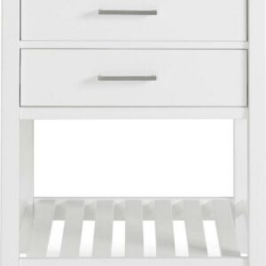 Bring beauty to your bathroom with this timeless vanity cabinet. This design combines traditional and modern influences with its clean-lined frame crafted from solid pine and composite wood. The vanity features nickel pulls and hardware. The soft-close drawer is perfect for stashing washcloths, makeup, and other necessities, while an open shelf down below offers a space for towels or other bathroom accessories. Vanity top and sink are not included.