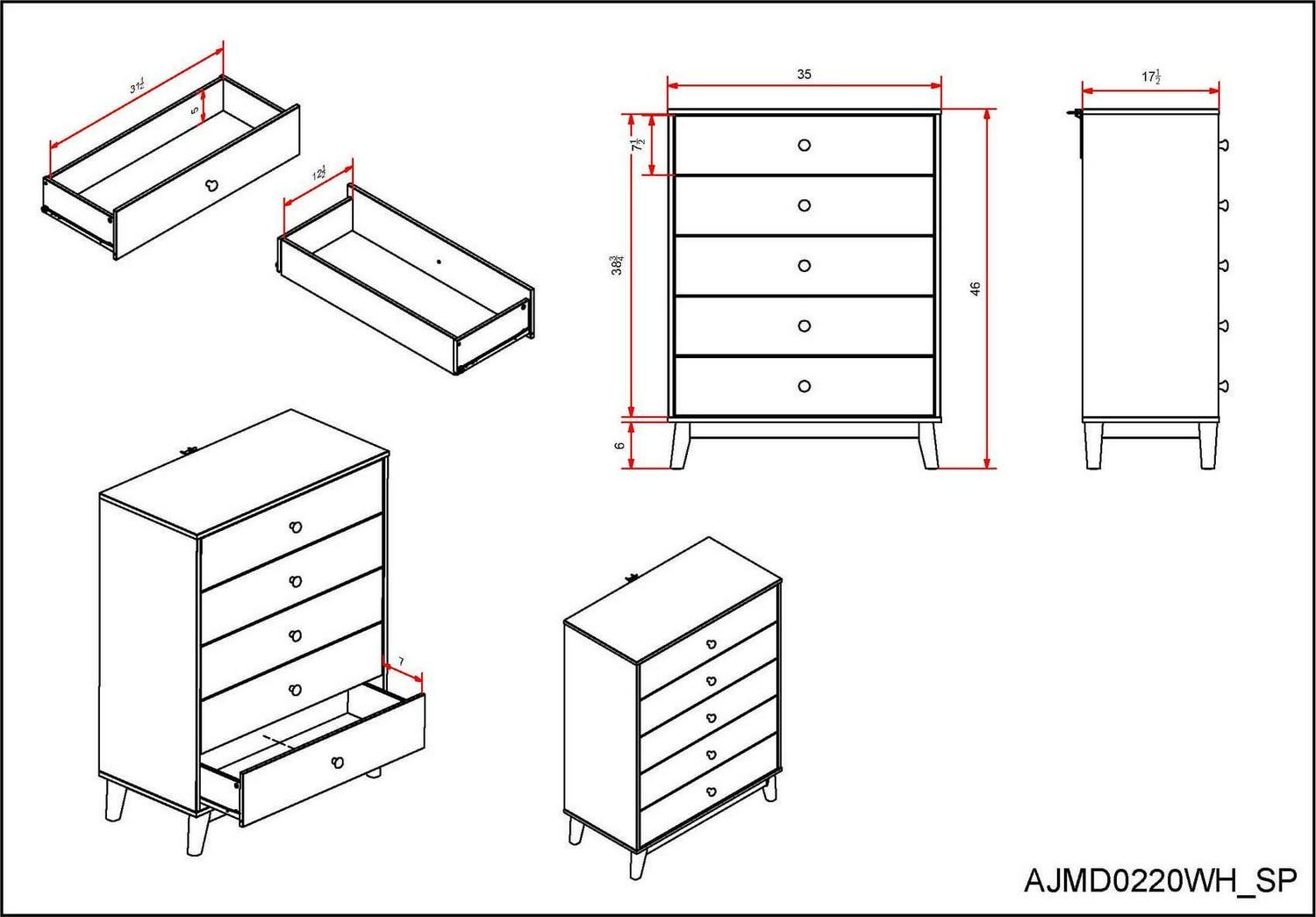 Alaterre MOD 35 W 5-Drawer Chest, White