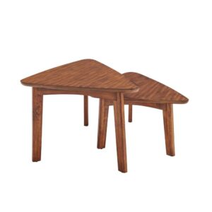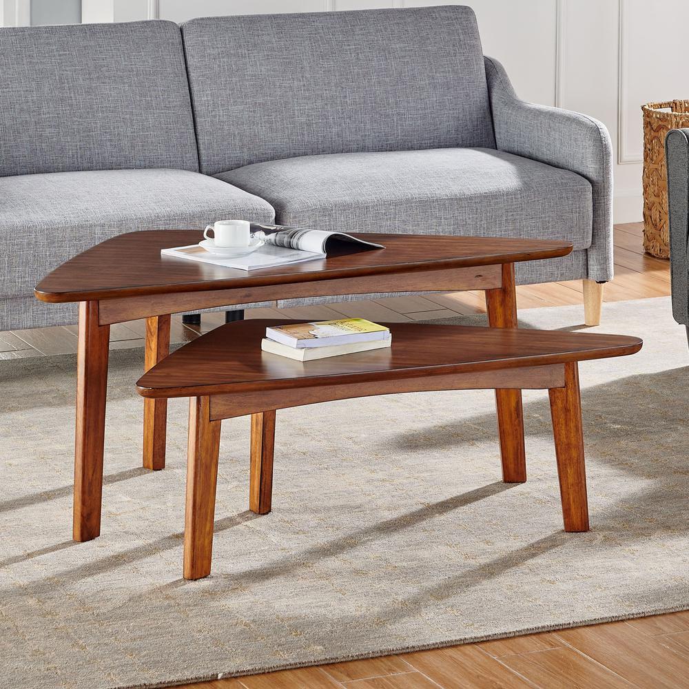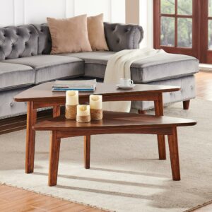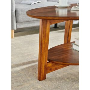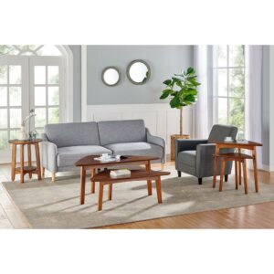 With our Alaterre Monterey 48″L Oval Mid-Century Modern Wood Coffee Table, Warm Chestnut, dare we say these tables are a modern take on mid-century modern design With their tapered legs and warm chestnut finish you will have the perfect accent to update your living space. This gorgeous 48″ long oval coffee table with floating shelf will be the perfect accent next to your large sectional sofa. Decorate with faux plants or your favorite photos; these tables will add the finishing touch to your space.