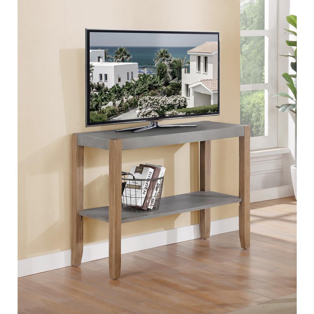 Alaterre Newport 40 L Faux Concrete and Wood Sofa/TV Console Table with Shelf, Light Amber