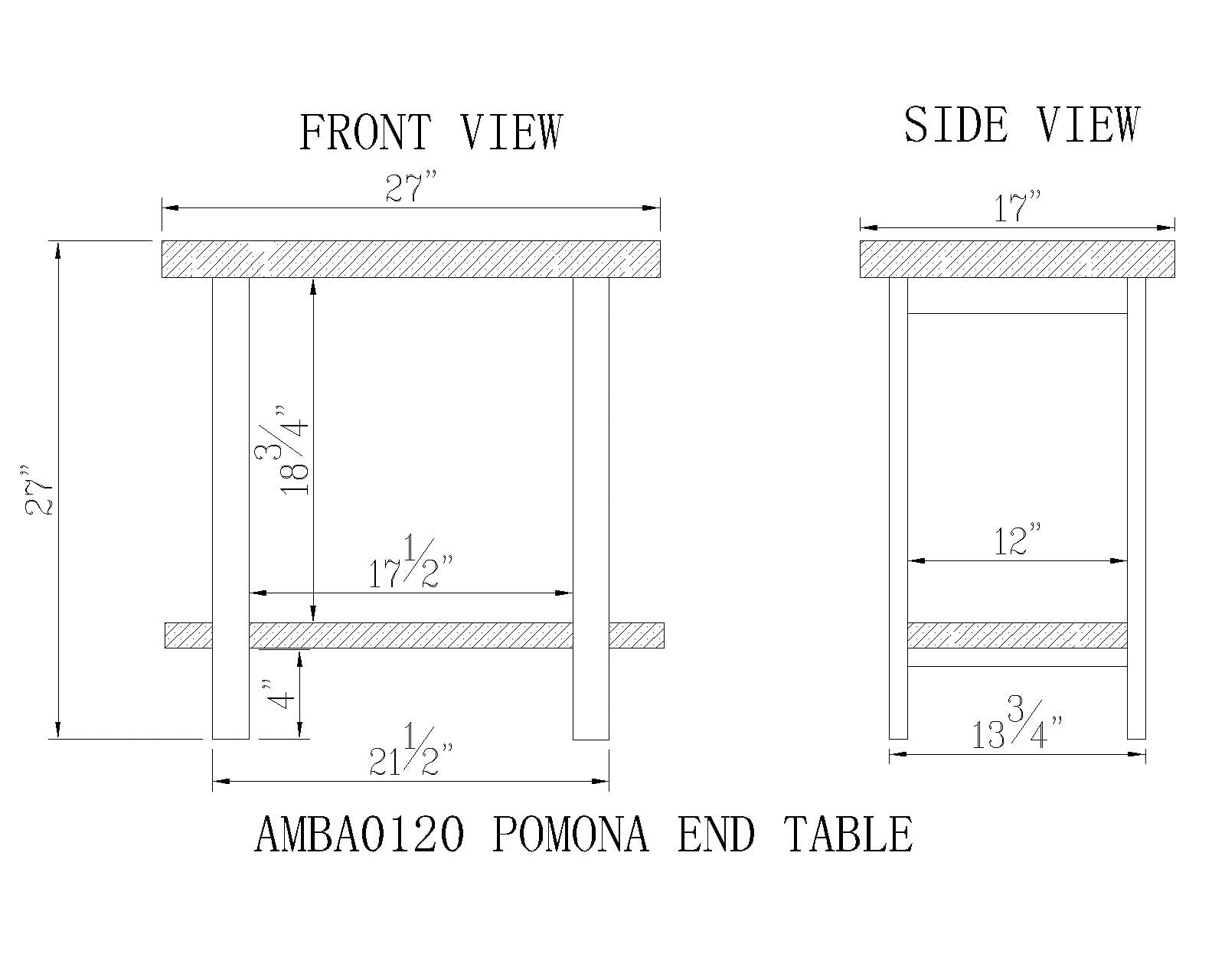 The Pomona collection features the exquisite workmanship of a solid wood top with metal legs that will last for years to come. Each piece is constructed of solid pine wood and finished to have the appearance of reclaimed wood. The reclaimed wood finish highlights natural wood variations such as cracks and knots which add to the piece’s character. Any item in this collection will add to the rustic industrial style of any space. Pomona 2-tier end table will add warmth to any décor. The rustic natural finish and design provide a stylish element to your room. Add your favorite lamp, books, magazines, or knick knack to complete your decorating style.