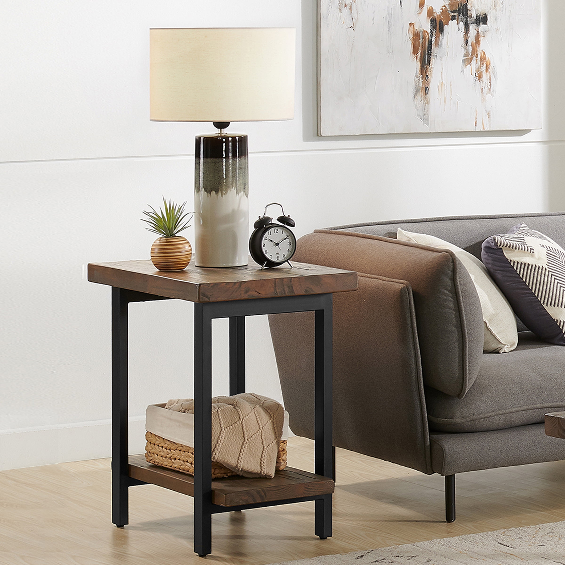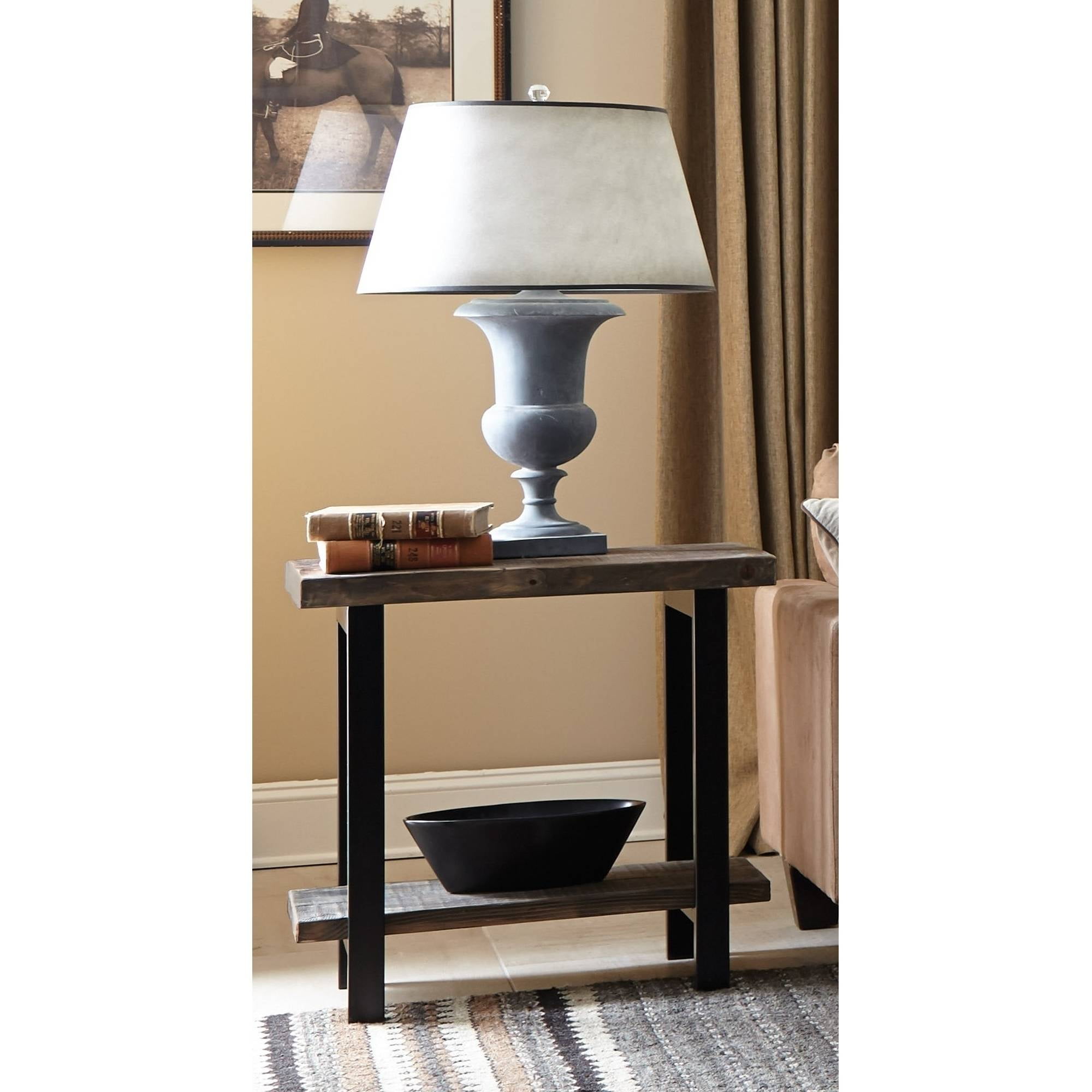 [RUSTIC STYLE] Introduce a breathtaking and timeless style to your living space with the Alaterre Furniture Pomona Metal and Wood End Table, the perfect choice for when you want to provide a rustic industrial appeal to your home [DURABILITY] Enjoy optimal longevity thanks to its exquisite workmanship, solid wood top, and metal legs that are built to last through the years [CONVENIENCE] Offering two shelves for displaying a variety of items such as pictures, books, or even your favourite knick-knacks, the Alaterre Furniture Pomona Metal and Wood End Table allows you to keep your living space tidy and organised [RUSTIC ELEGANCE] The Pomona End Table combines reclaimed wood and metal for a rustic touch in any room [MEASUREMENTS] The Alaterre Furniture Pomona Metal and Wood End Table measures 27″w x 16 3/4″d on the top shelf and 27″w x 11 1/2″d on the bottom shelf, making it perfect for any living space
