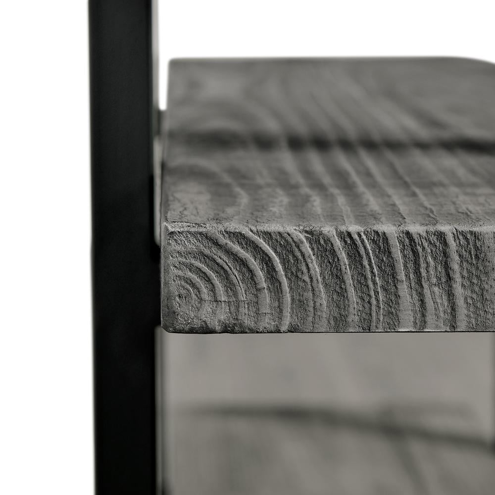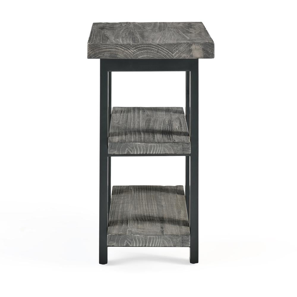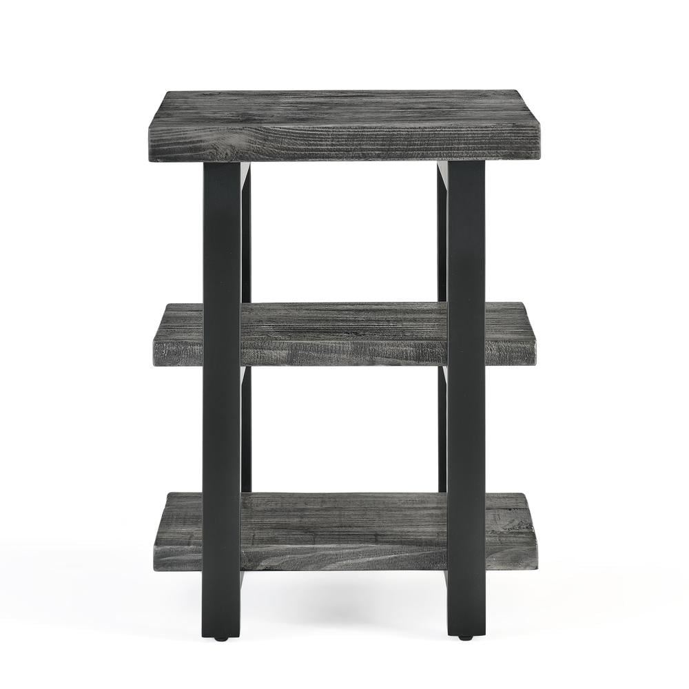 EXCEPTIONAL CRAFTSMANSHIP: Pomona 2-Shelf End Table made from solid wood with metal legs for durability. The rustic finish adds timeless charm to living spaces, blending modern and industrial elements RUSTIC INDUSTRIAL APPEAL: The Slate Gray finish provides an elegant touch to the natural exposed grain of the reclaimed wood. This charming combination allows you to enjoy the southern hospitality of a rustic farmhouse aesthetic ORGANIZATION & STYLE: The Pomona 2-Shelf End Table offers spacious shelves for organizing your living space; store lamps, magazines, and more on the top and keep your books or trinkets on the lower shelf to add both style and functionality DESIGN VERSATILITY: The Pomona 2-Shelf End Table features reclaimed wood and a slate gray finish, perfect for any room STURDY CONSTRUCTION: The Pomona 2-Shelf End Table is built with solid pine wood and metal to ensure a sturdy and durable piece of furniture that is tailored to fit the rustic industrial décor of any room