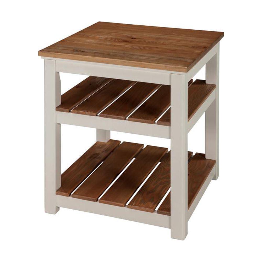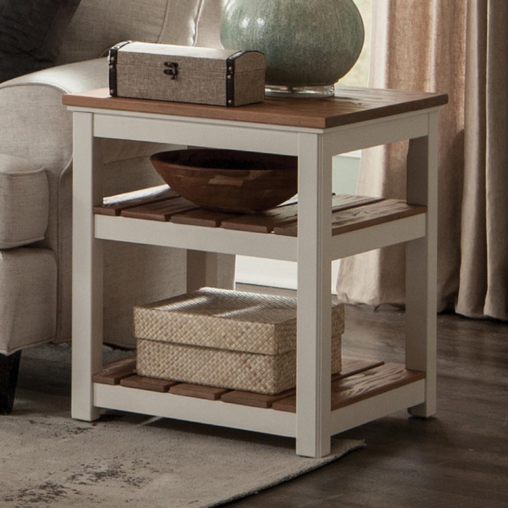 Alaterre Savannah 2 Shelf End Table, Ivory with Natural Wood Top