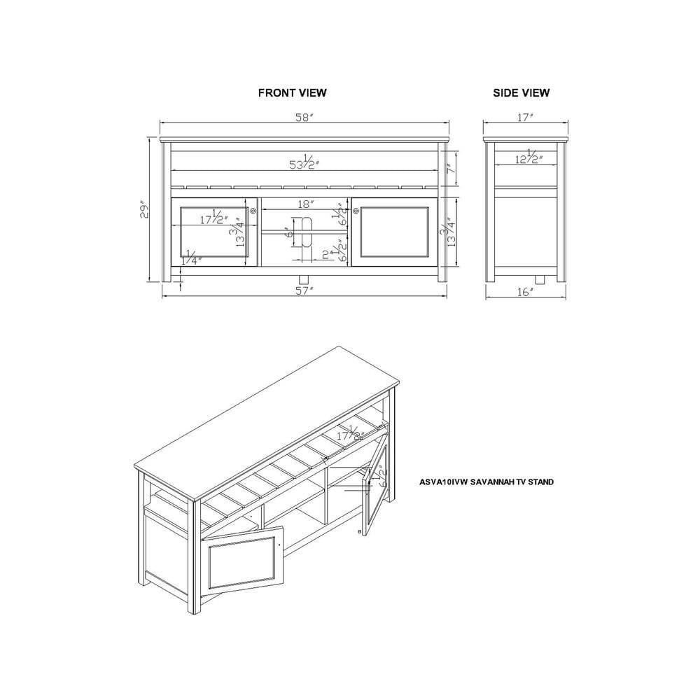 [COASTAL, COTTAGE & MODERN FARMHOUSE STYLE] Savannah 2-Door TV Cabinet brings modern cottage styling to your living space with its ivorry painted legs and wood top [SUFFICIENT STORAGE AND CAPACITY] Media Cabinet has a long slat shelf, fixed middle shelf and two spacious storage cabinets, allowing for a 64” television [EASY ASSEMBLY] Constructed with Pine and composite wood, this cabinet is easy to assemble with the necessary tools and instructions [BLENDS SEAMLESSLY WITH DECOR] The Savannah 2-Door TV Cabinet features an elegant ivory finish; perfect for enhancing your living room while accommodating a 64″ TV [DIMENSIONS & SPACE] Assembled dimensions: 58″ W x 17″ D x 29″ H; Slat shelf dimensions: 53.5″ W x 12.5″ D; Space between top and shelf is 7″ H