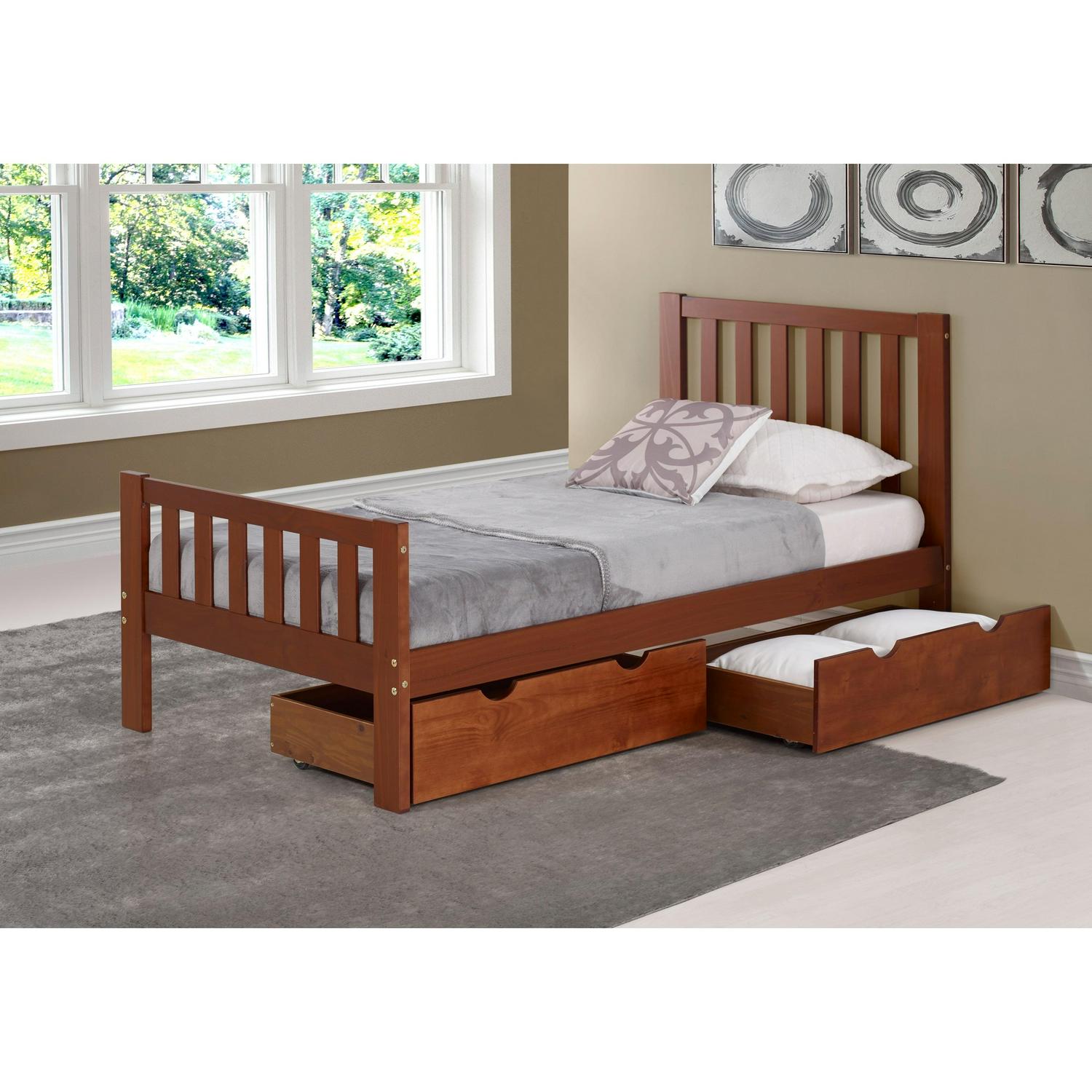 Versatile underbed storage drawers are 9 3/8″H overall.