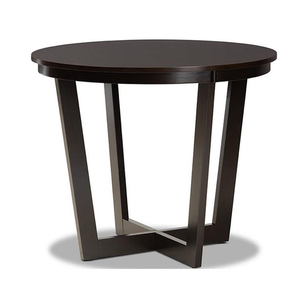 Alayna Modern and Contemporary Dark Brown Finished 35-Inch-Wide Round Wood Dining Table