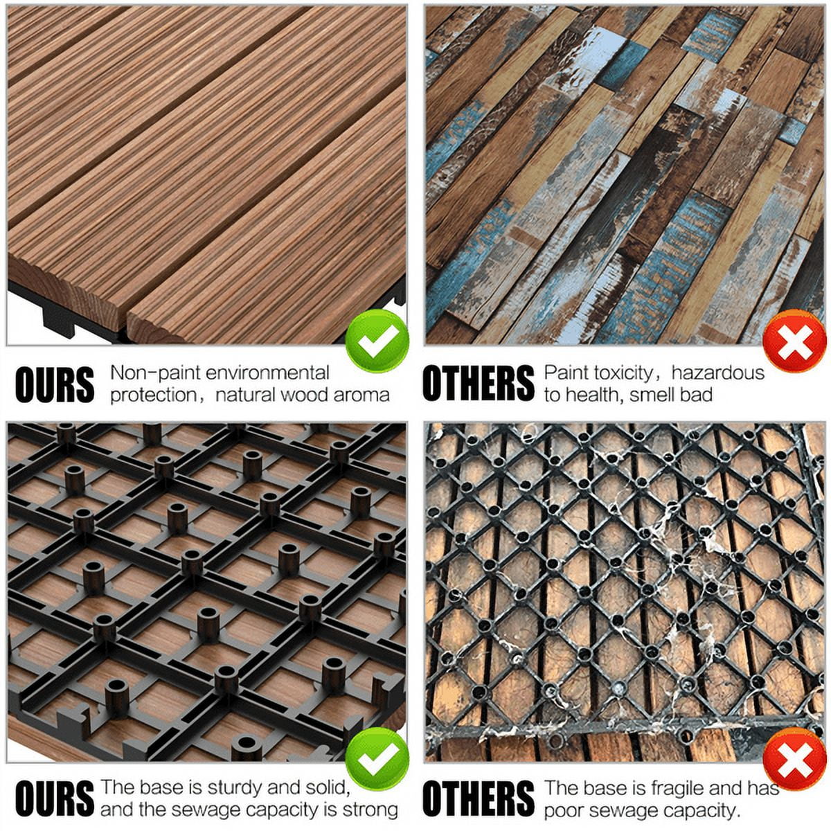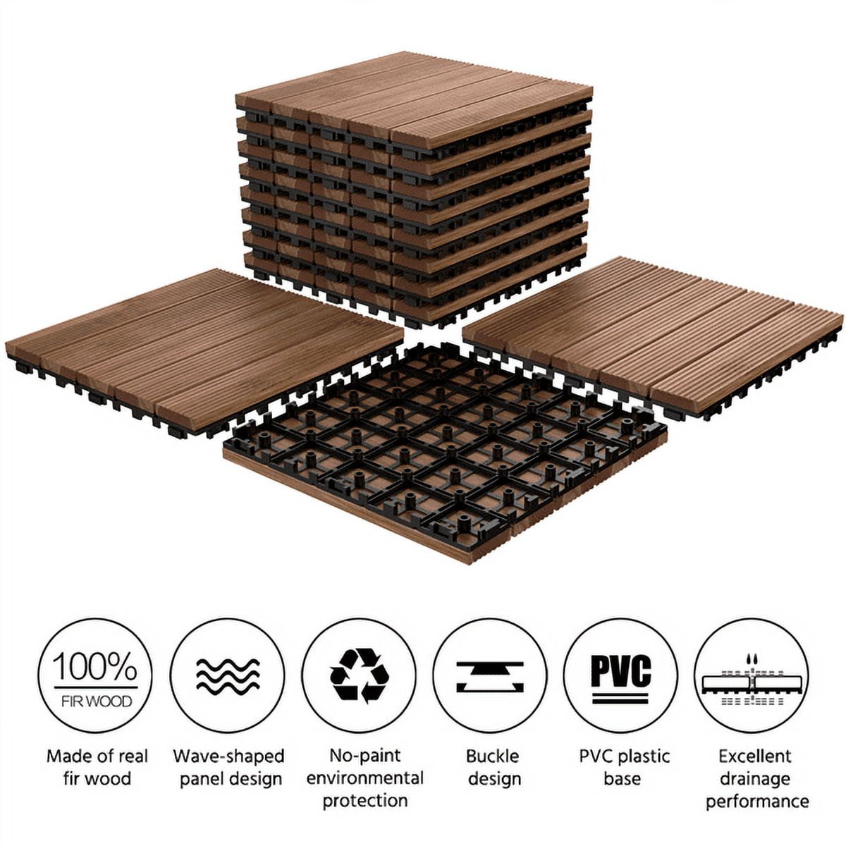 Alden Design 11pcs Indoor & Outdoor Wood Flooring Tiles for Patio Garden, 12″ x 12″