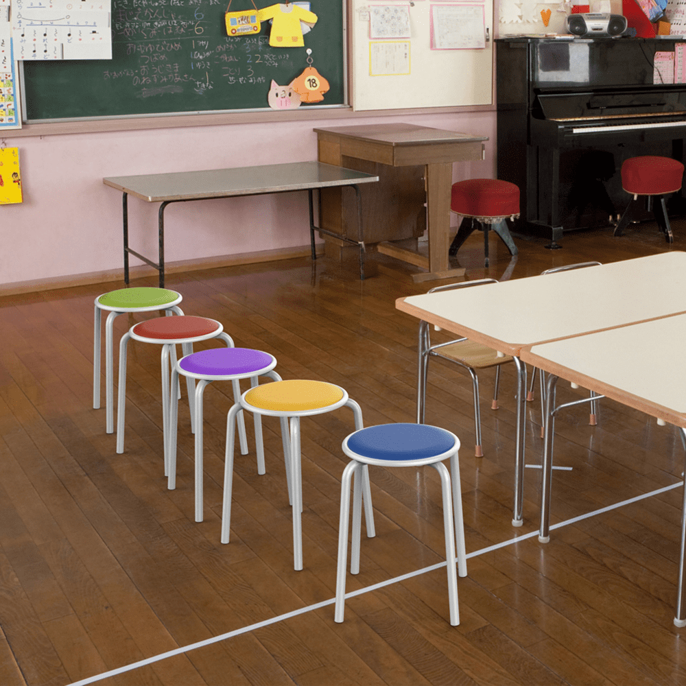 Our 17.7-inch counter height stool features solid construction and selected materials, ensuring a high load capacity of up to276 lb, strong enough for your daily use. Space-saving stackable stools can be easily stacked up when not in use, ideal for any crowded place such as classrooms. This stackable stool set comes with five stools in five lively colors. Jaunty colors introduce brightness and energy to the room and also bring people a happy and cheerful mood.