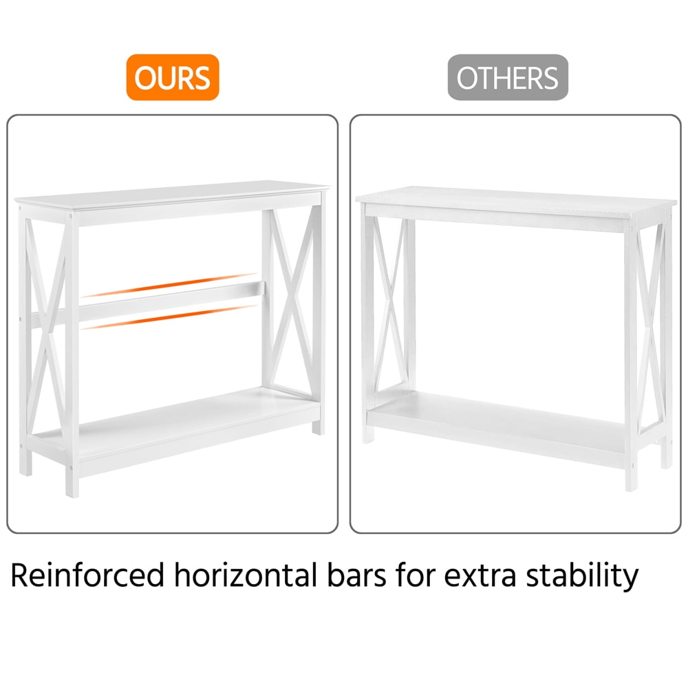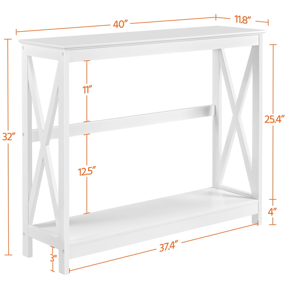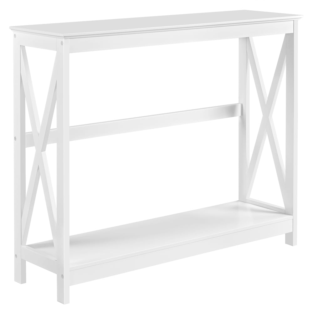Alden Design 2-Tier X Design Wood Console Table with Shelf for Entryway Living Room, White