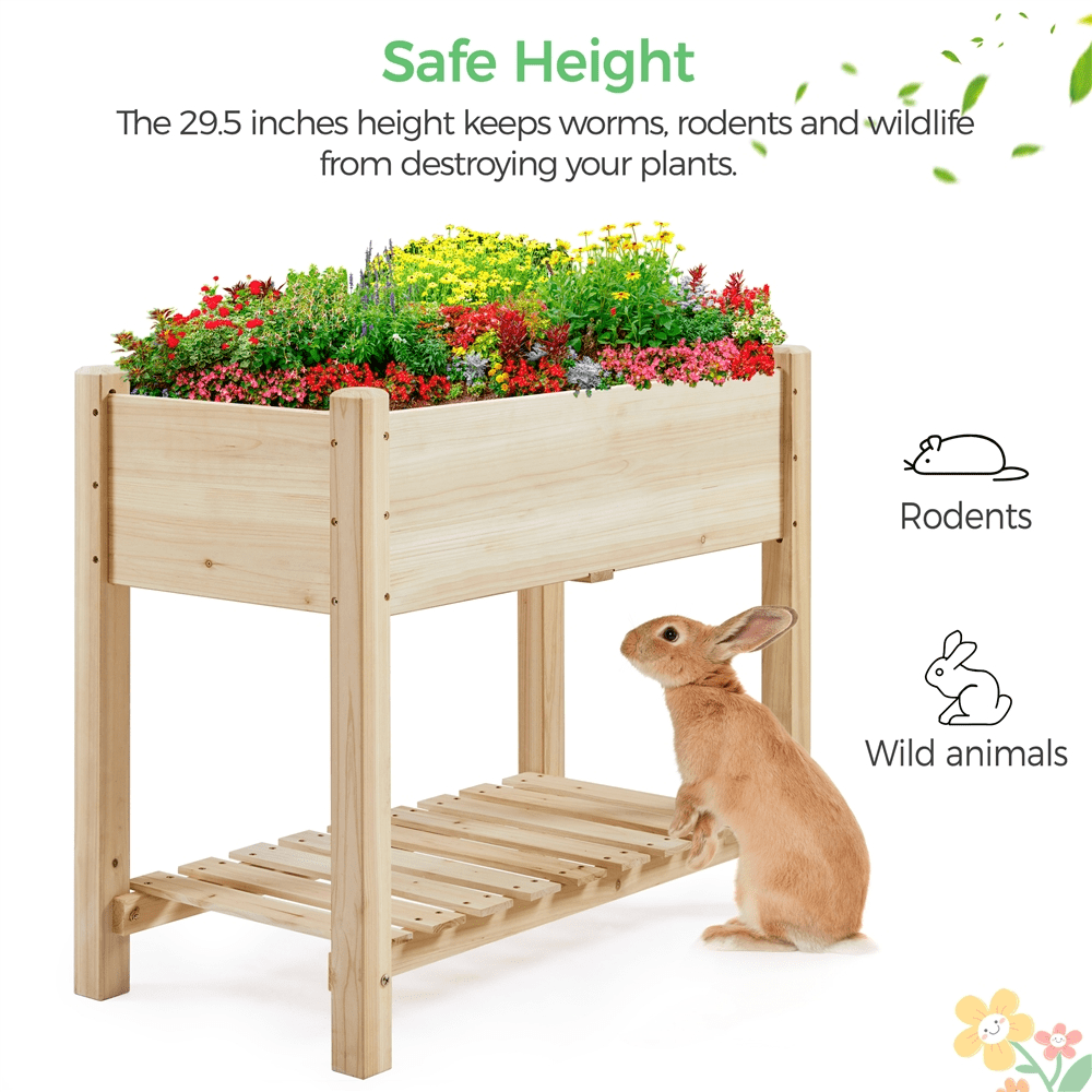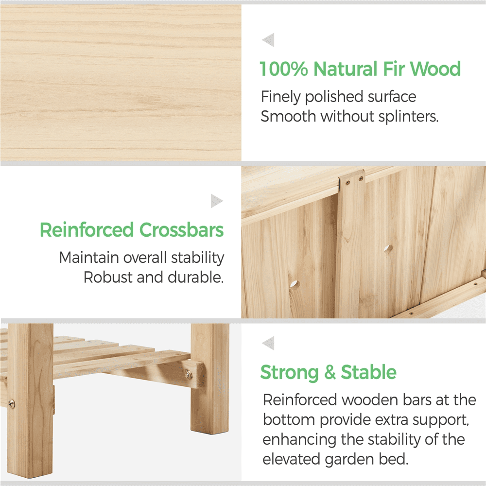 Alden Design 2 Tiers Wooden Raised Garden Bed Elevated Planter Box : Material: Solid wood and metal hardware Overall Size: 86 x 46 x 76 cm/34 x 18 x 30” (L x W x H) Inner Size: 77 x 37.5 x 20.5 cm/30.3 x 15 x 8” (L x W x Depth) G.W.: 10.4 kg/23 lb N.W.: 9.6 kg/21.2 lb Max. Load Bearing: 100 kg/220.5 lb Load Bearing of the Shelf: 30 kg/66.1 lb Note: It is advised that the maximum height of earth is 15 cm/6″. Please do not exceed 15 cm/6″ to avoid overload after watering. Please allow 1-2 cm (0.4-0.8″) error due to manual measurement. Assembly Required Color: Natural