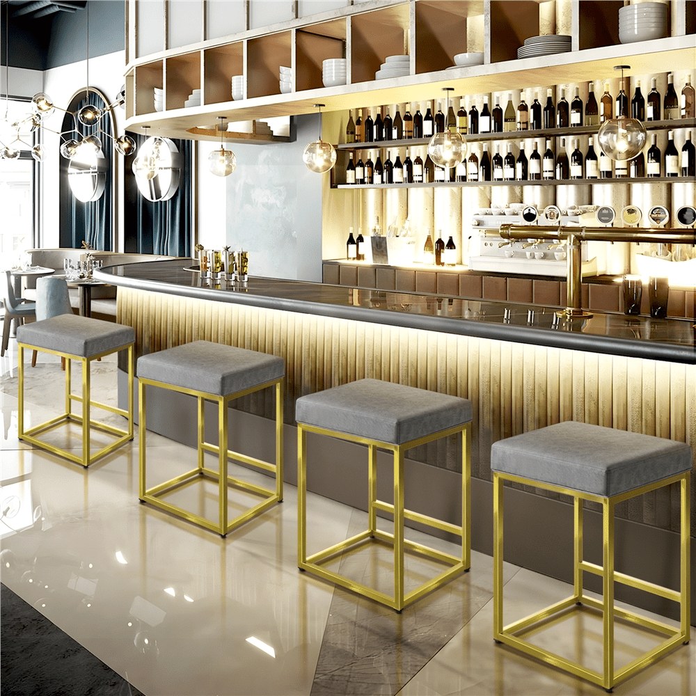 Alden Design 24″ H Modern Upholster Counter Bar Stools With Gold Frame, Gray