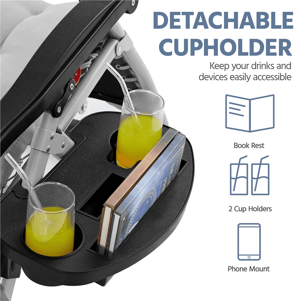 This 29-inch zero gravity outdoor recliner, featuring an Adaptive Reclining System and two 8cm thick soft pads, aims to offer you an optimal outdoor experience. Mixing an adjustable backrest, elastic straps-fixed Texteline surface, and thick, soft pads for added warmth, this recliner conforms well to your body, offering spacious, warm support, making it perfect for winter outdoor activities, such as napping, sunbathing, reading, fishing, enjoying the snow, and BBQ. With a high-hardness painted steel frame crafted in strong and stable construction and anti-slip sleeves on the legs, this zero gravity chair can firmly hold up to 400 lb. This folding chair, weighing 21 lb with a compact folded size and shoulder strap, is highly portable and easy to store. It comes fully assembled for immediate use. As a blending of elegant, thoughtful, and professional design, this zero gravity folding chair suits diverse outdoor settings, like gardens, poolsides, lawns, beaches, and mountains.