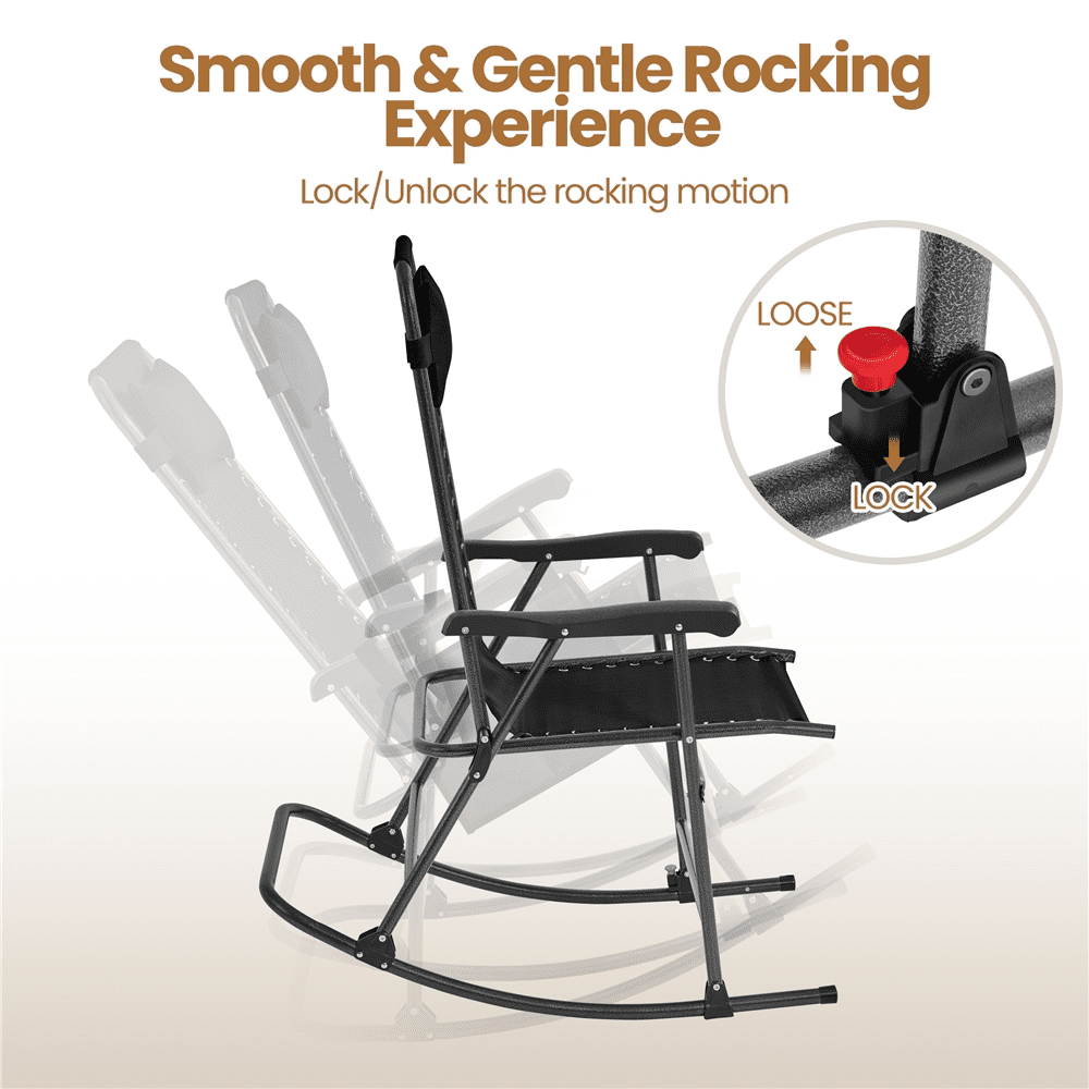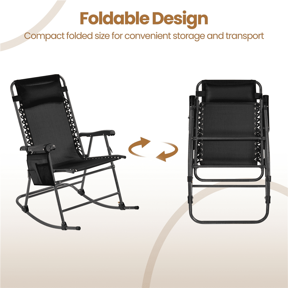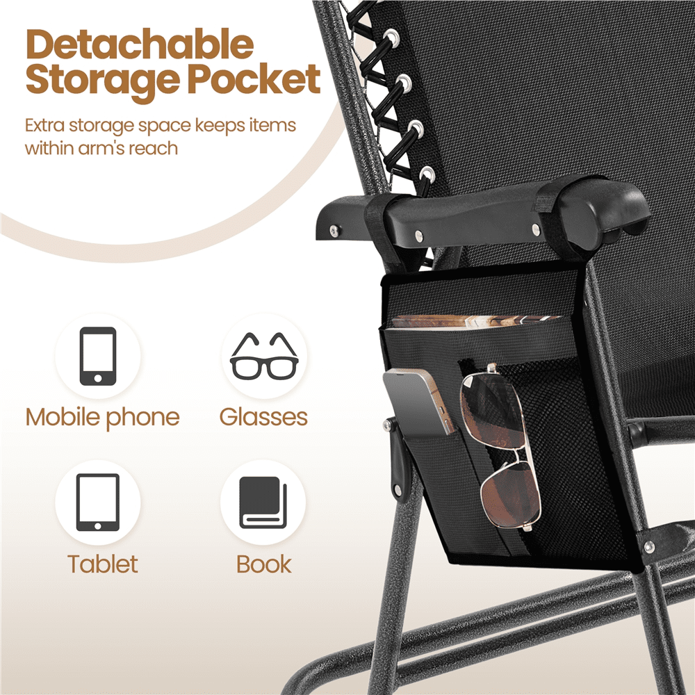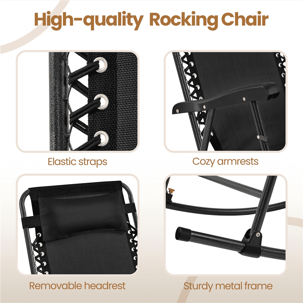 Alden Design 2pcs 26in Foldable Zero Gravity Rocking Chair with Cupholder/Pillow for Outdoor, Black
