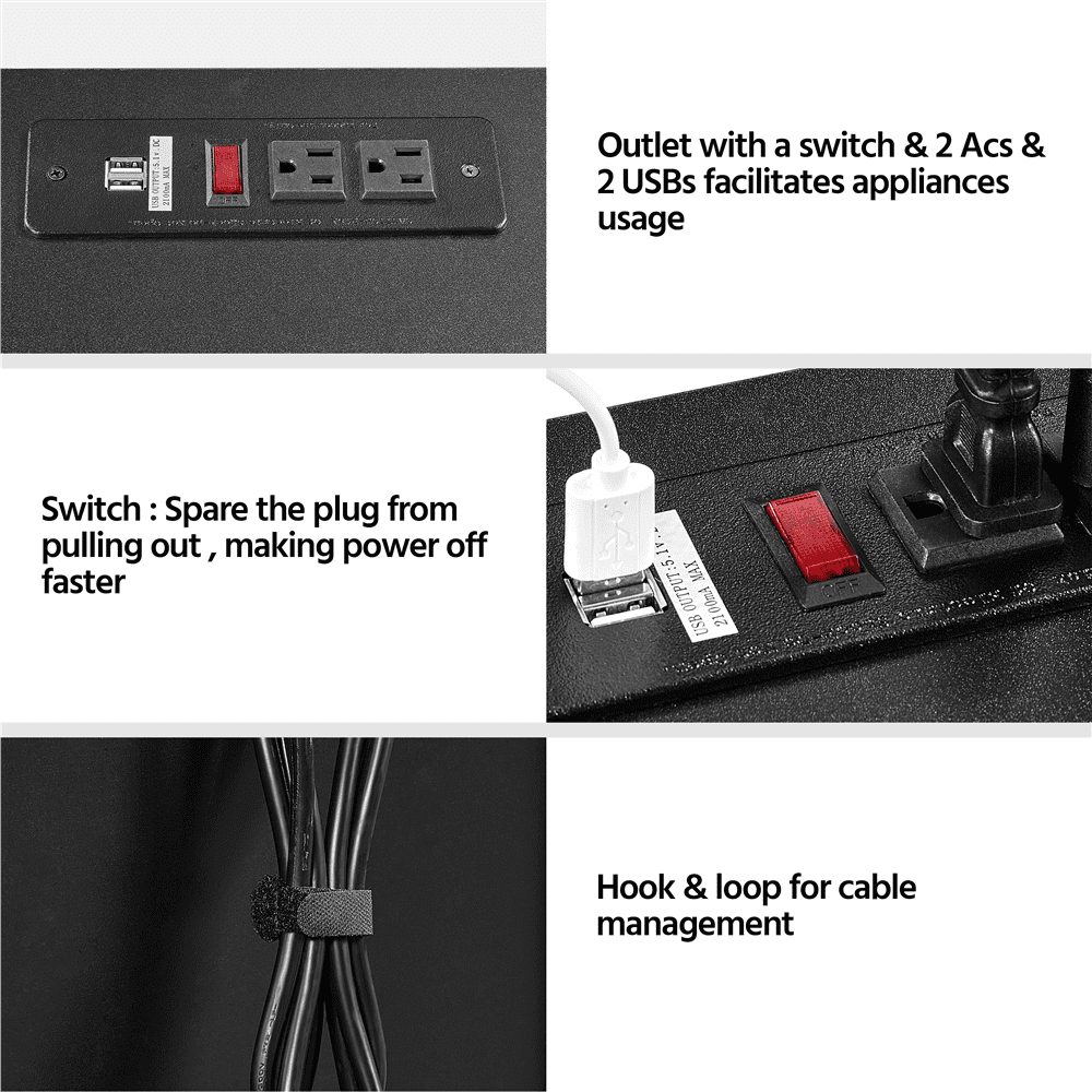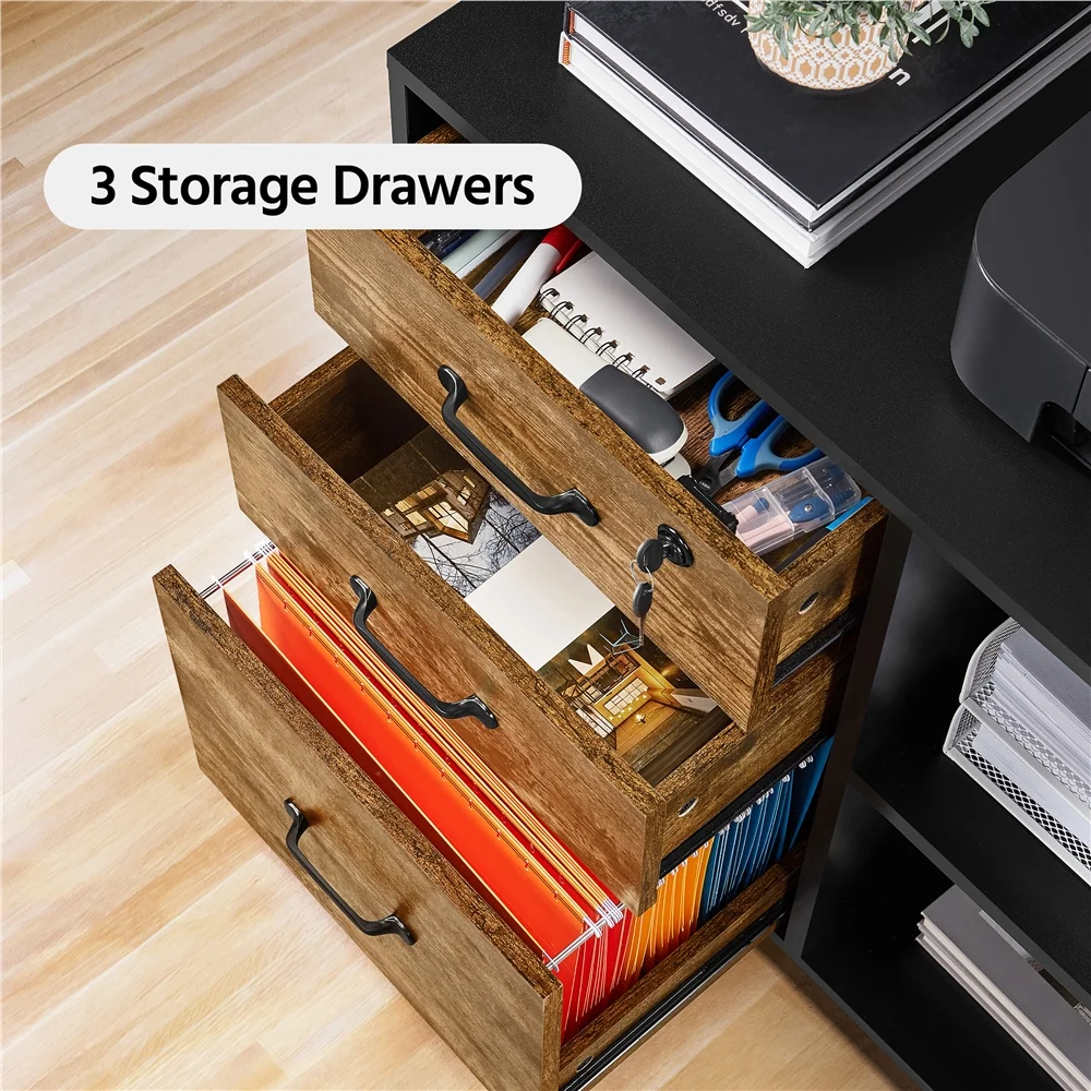Alden Design 3-Drawer Mobile Vintage File Cabinet with Power Outlet for Home and Office Black, Rustic Brown Color: Rustic Brown & Black Materials: MDF, Particle Board Overall Dimensions: 31.5″ L × 16″ W × 26″ H Small Drawer: 12.9″ L × 12.9″ W × 3.1″ D Big Drawer: 13.1″ L × 13.8″ W × 10.3″ D Max Weight Capacity: Top Board: 110 lb Each Shelf: 22 lb Small Drawer: 22 lb Big Drawer: 44 lb Gross Weight (product in the box): 62 lb Net Weight: 55 lb Power Outlet: Length: 2m Rated Power: 1500W Ports: 2 ACs & 2 USB Comprising: a switch, a HOOK & LOOP Plugs: 3-plug Cable: double-insulated round wire Note: Please allow ± 1/2’’ measurement tolerance. Please do not use appliances that exceed the power rating of the power outlet! Residential Use Assembly Required