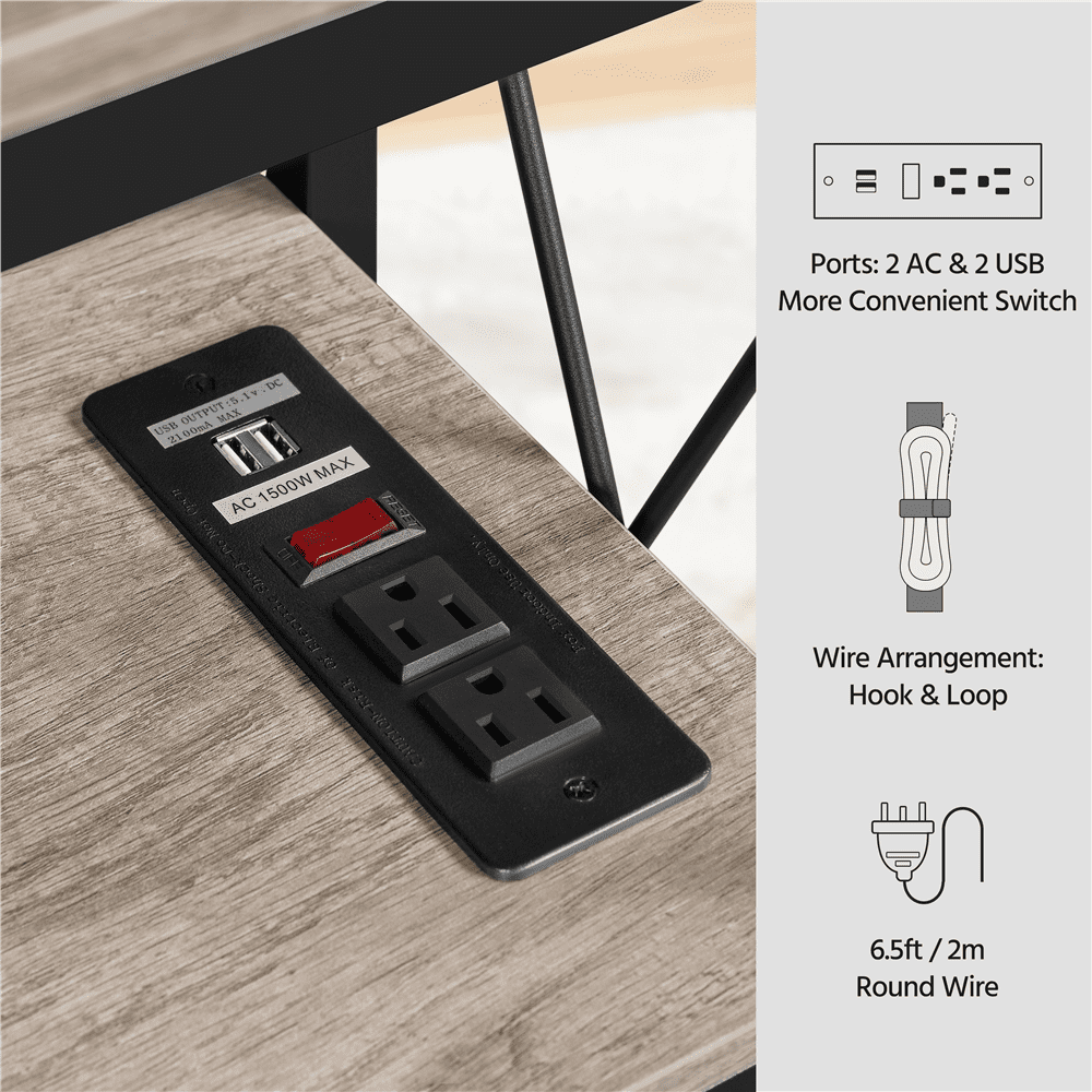This standard 3-layer console table comes in the proper height of 81 cm/ 32” with natural wood tone and textured touch is an elegant choice no matter behind your sofa backrest as a sofa table or against the wall to serve your decorations and collections. The added 1500 w built-in power outlet with a switch, 2 AC& 2 USB ports together with a 2m long, double-isolated rounded cord facilitates your daily charging and the accommodation of some appliances like speakers and lamps.