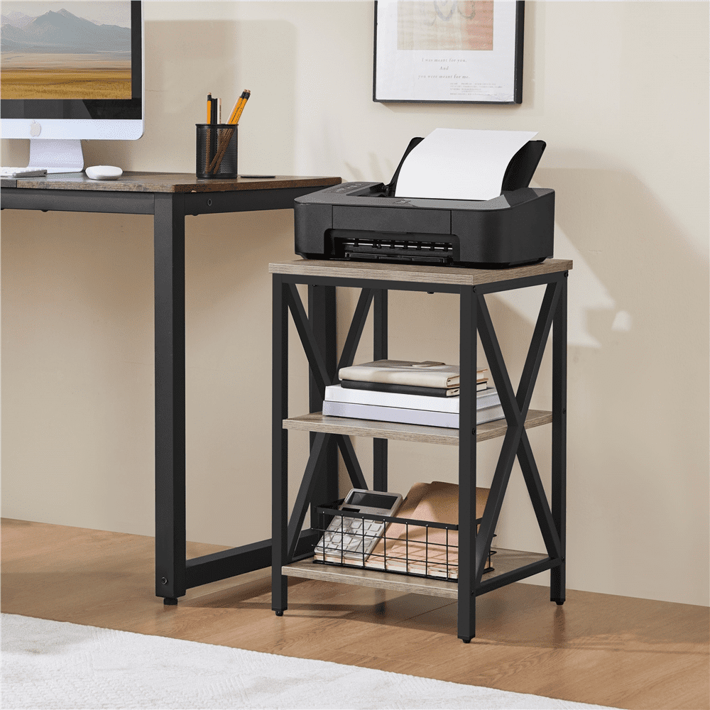 Alden Design 3 Tier x Frame Side Table for Living Room, Gray