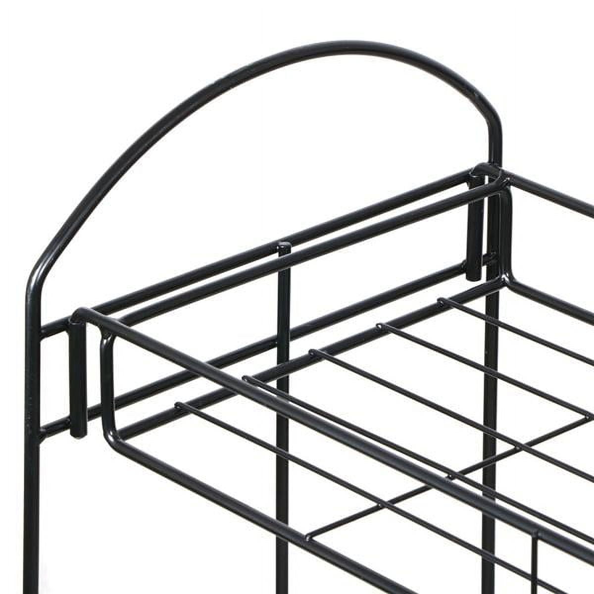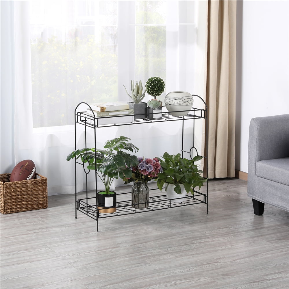 This metal rack stand can be used to display planters, flower pots, garden decorations, books, shoes, kitchenware and more. The stand is ideal for both indoors and outdoors. Use indoors in the entryway, living room, bathroom, screened patio, kitchen and for outdoors use it in the garden, pool area, balcony, flower shop, etc. This 2-tier flower stand is made of high-quality iron. Its steel construction provides much durability. Powder coated finish will last for years, and the two levels enhance the versatility of this piece.
