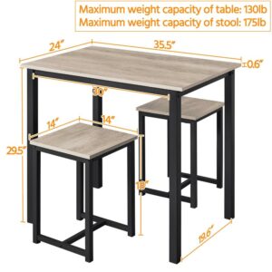 Alden Design 3pcs Industrial Dining Set, Rustic Gray