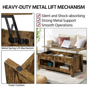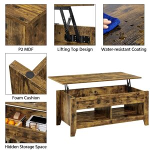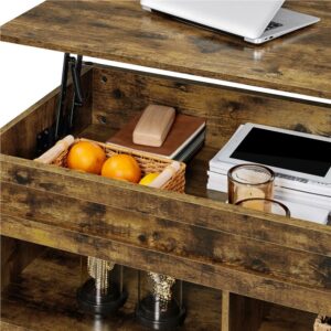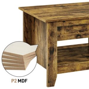 Alden Design 47.5 Lift Top Coffee Table with 2 Storage Compartments, Rustic Brown
