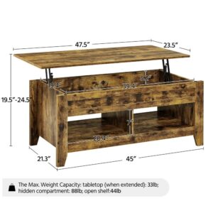 Alden Design 47.5″ Lift Top Coffee Table with 2 Storage Compartments: