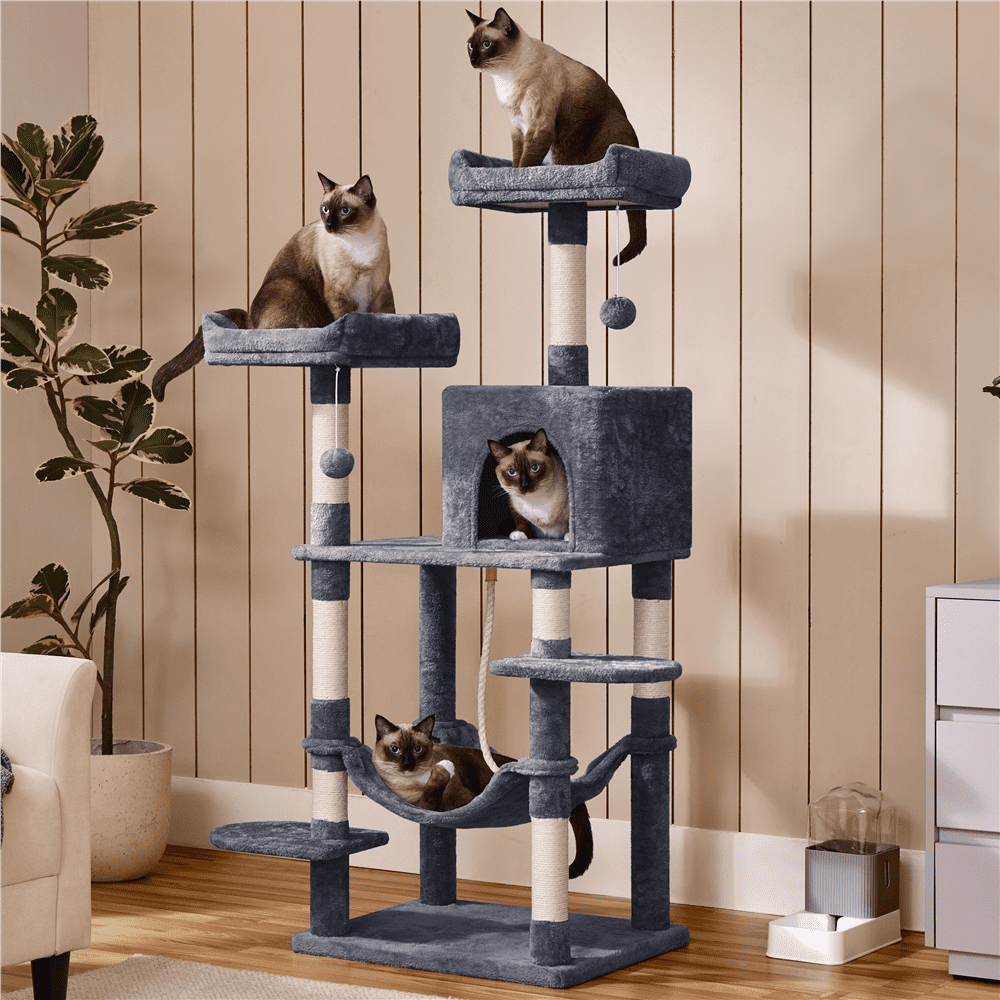 Alden Design 59″ Cat Tree with Condo and Scratching Post Tower, Dark Gray