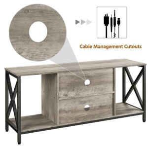 Alden Design 60-Inch Industrial TV Stand with Storage, Distressed Gray