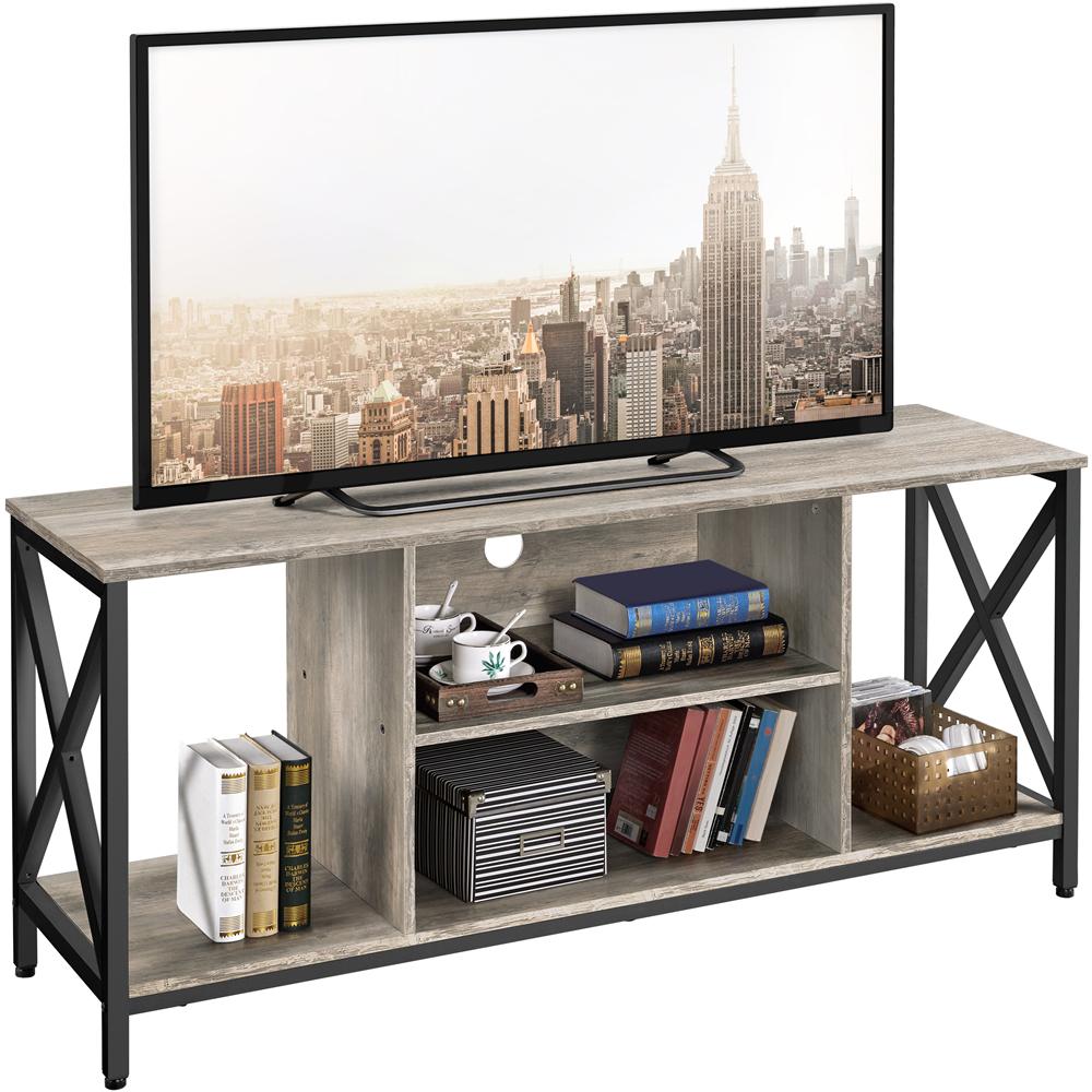 Alden Design 60-Inch Industrial TV Stand with Storage, Distressed Gray: