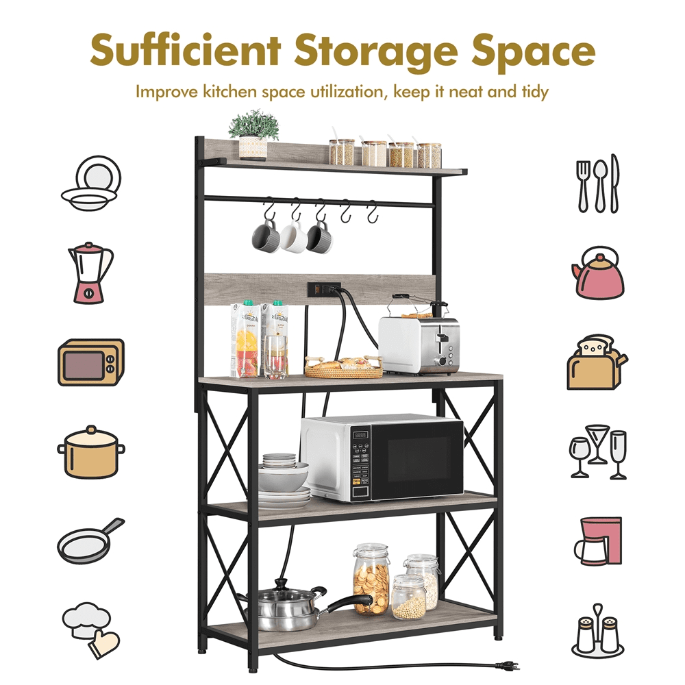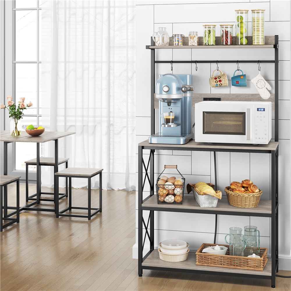 Alden Design 63″H Kitchen Baker’s Racks with 2 AC Outlets for Kitchens Living Rooms, 4-Tier, Gray