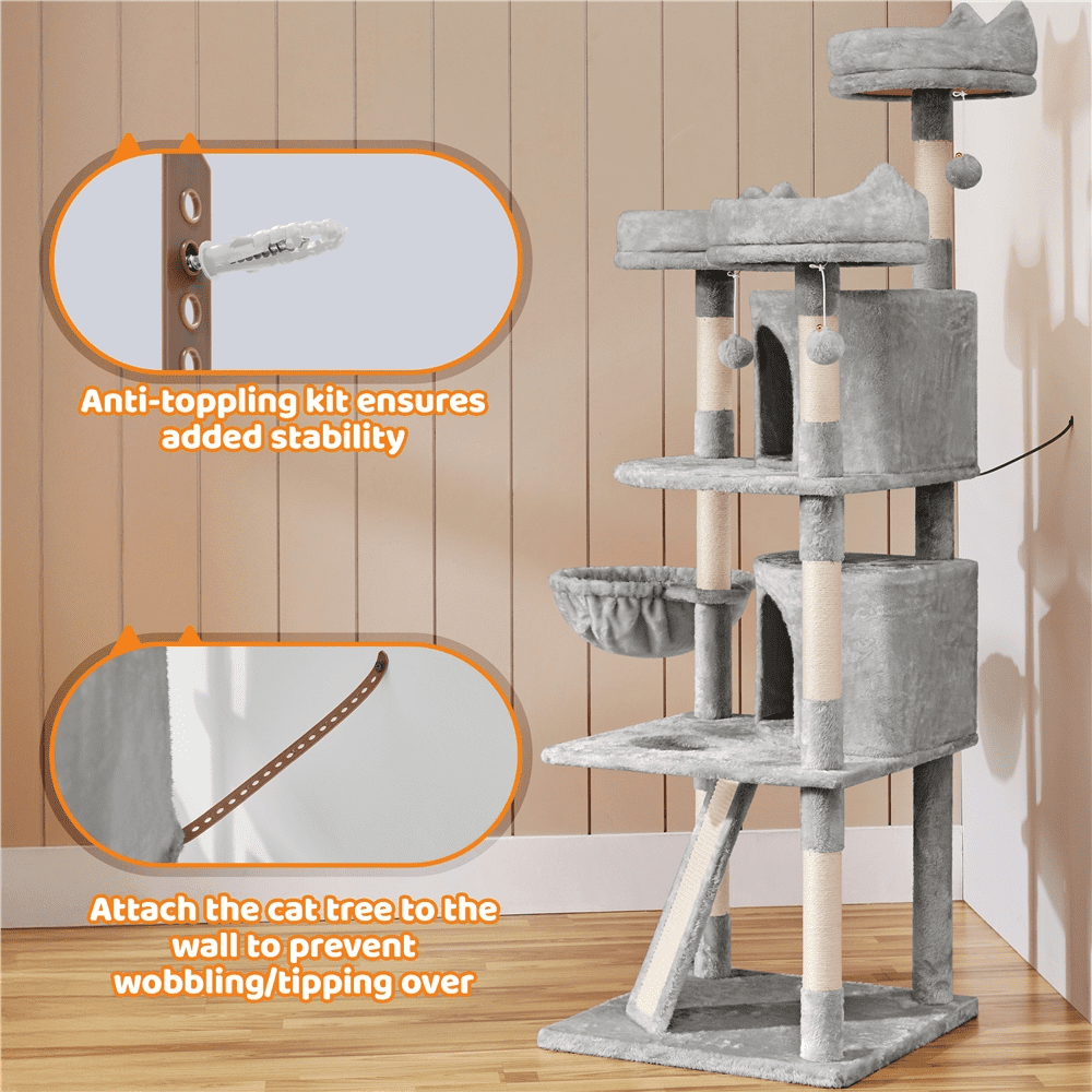 Alden Design 72″ H Multi-Level Large Cat Tree with 2 Cozy Perches for Medium Cats, Light Gray