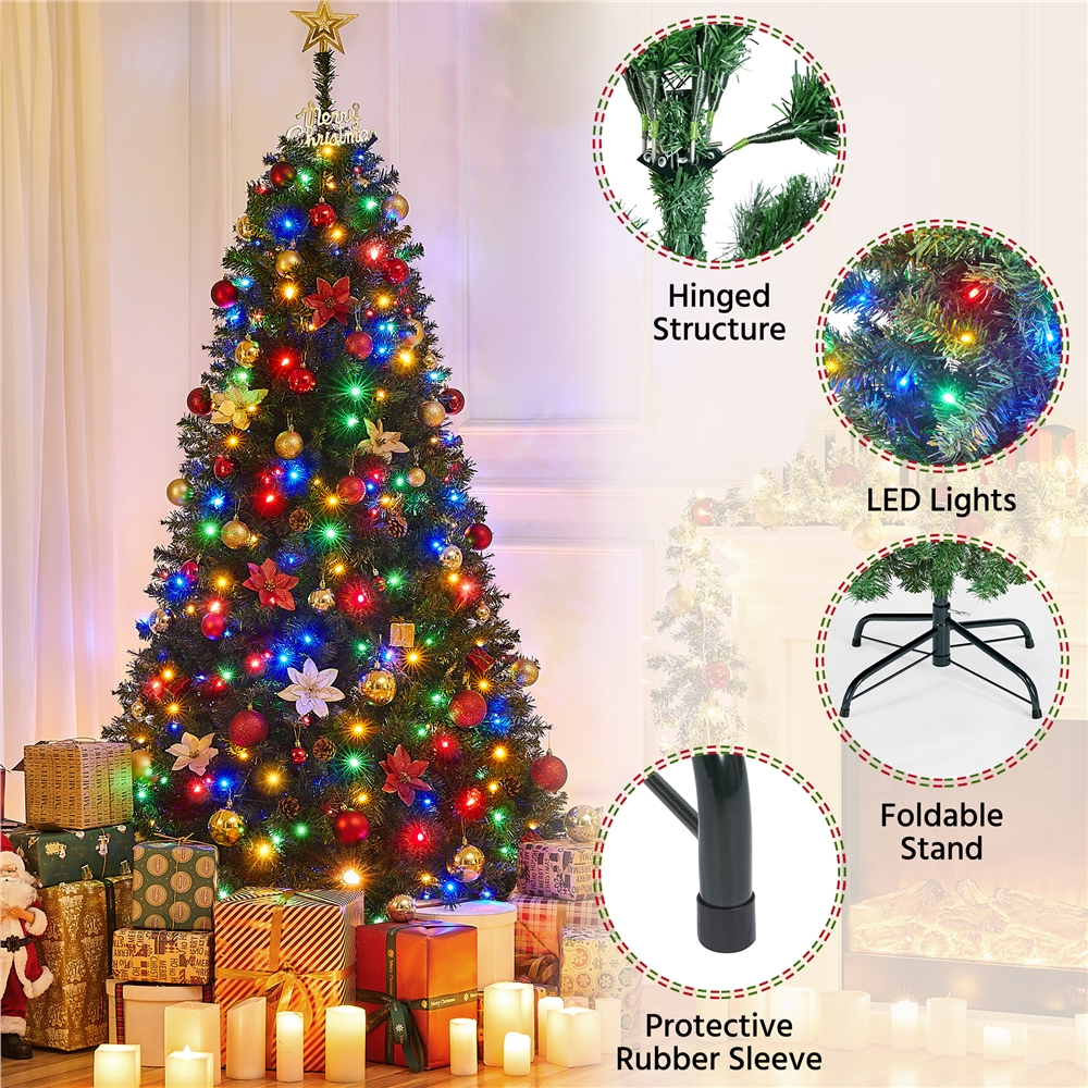 If you are planning to hold dark-themed events or activities at your house, do not miss this pre-lit artificial tree. Thick and lush branches and tips give this tree a full-body look. Premium PVC leaves are flexible, durable, and bendable, and also leave your floor neat and clean. Colorful LED lights also make this faux spruce more festive and practical. Simple assembly is required since the tree is built in a hinged system and the lights are pre-set among the branch tips. We hope you can enjoy a sweet fun time decorating this full and fluffy tree with your family and beloved ones.
