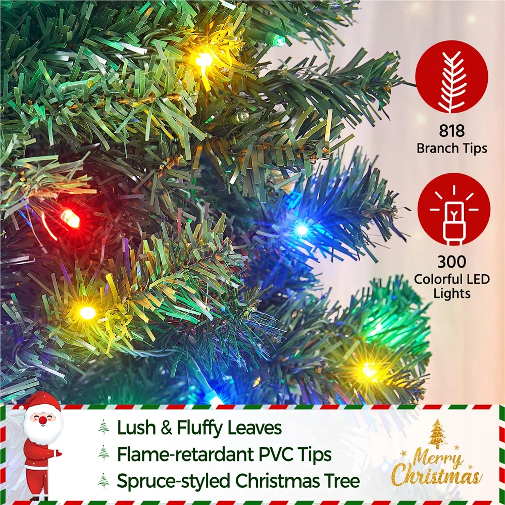 SmileMart 6ft Pre-lit Spruce Artificial Christmas Tree with 300 LED Lights, Green Color: Green Materials: PVC, Iron Total Lights Count: 300 Light Tone: Colorful Tree Types: Regular Pre-Lit Spruce Total Tips Count: 818 Assembled Dimension: 42.5×72’’ (Dia. × H) Stand Dimension: 20×5.5’’(Dia. × H) Tree Trunk Diameter: 1’’ Trunk Pole Thickness: 0.02’’ Shipping Weight: 22lb Item Weight: 20lb Note: 1. Please allow ± 1.2” measurement error due to the bendable branch tips. 2. Please allow ± 1.1lb measurement error. Colorful LED Lights Durable Materials